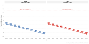 Verideki uzun vadeli ilişkileri analiz eden ARIMA modeli de benzer bir tablo çizmektedir. Model, düşüşün devam edeceğini ve 2034 yılı için 0.93 bandını işaret etmektedir.