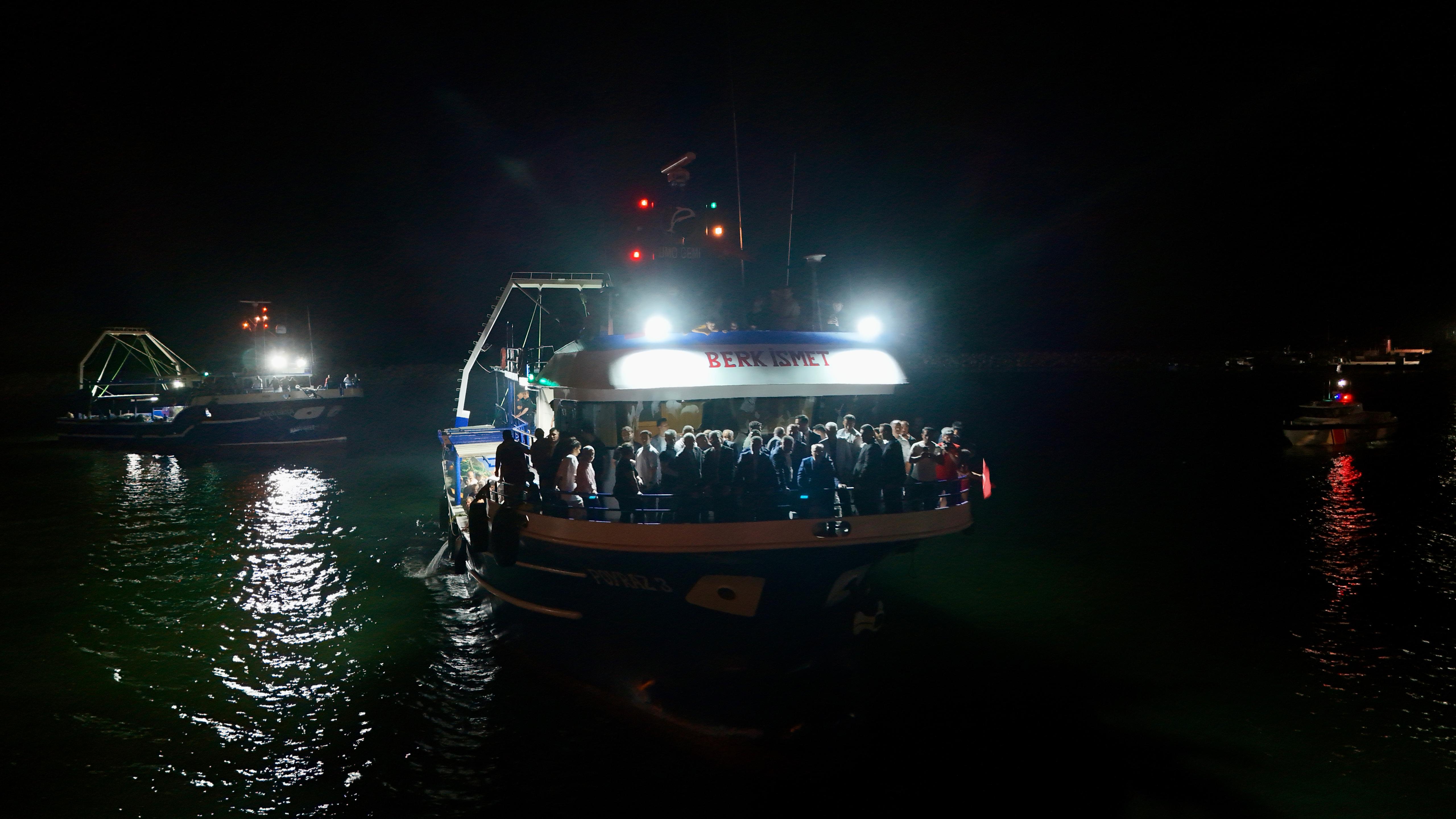 Konuşmaların ardından Karataş Limanı'na geçen Vali Köşger, okunan Kuran-ı Kerim tilavetinden sonra denize açılmak için bekleyen bir balıkçı teknesine bindi. Buradan balıkçılar konvoy halinde denize açıldı.