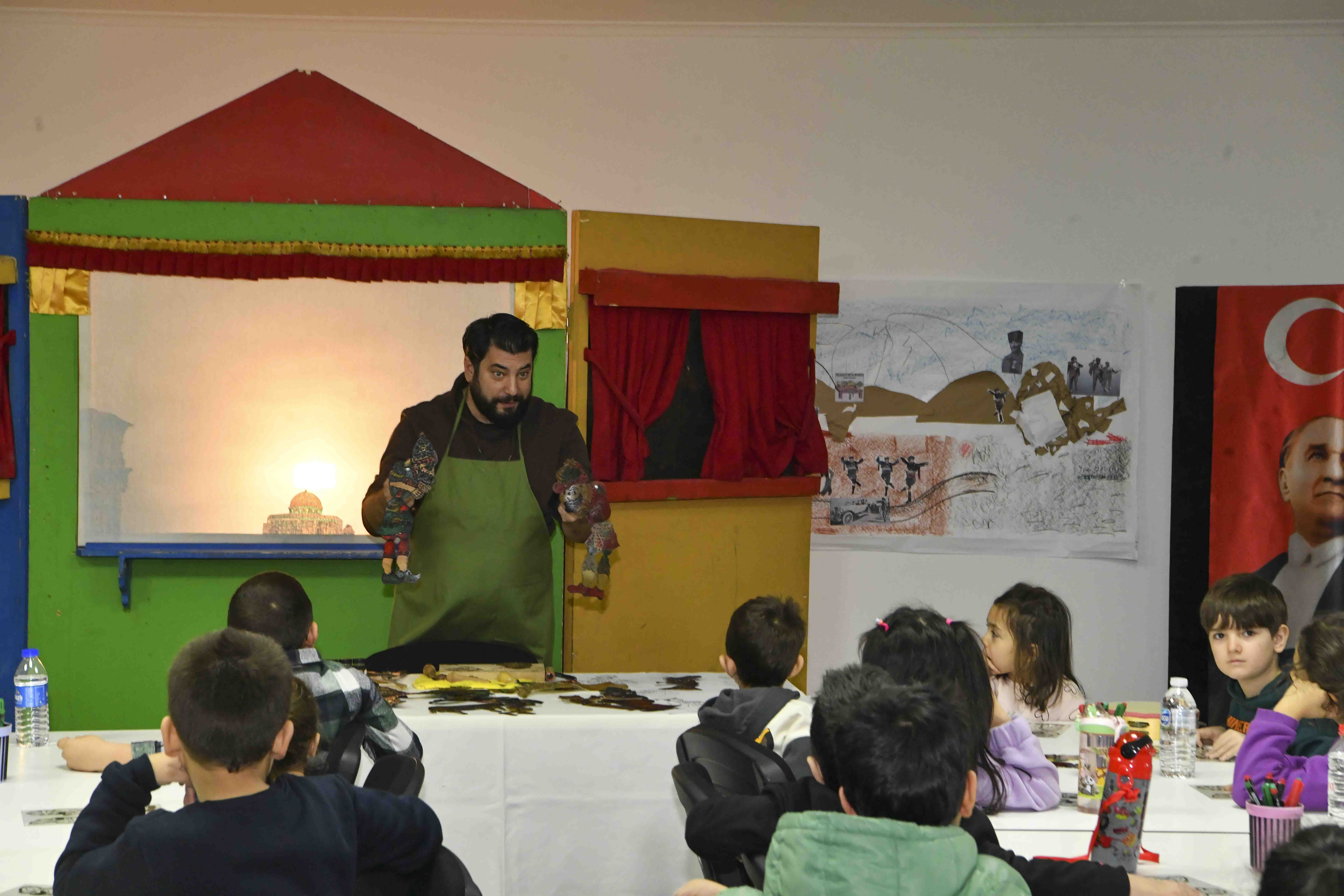 Kocatepe Kültür Merkezi’ndeki gösterime çocuklar ve aileleri yoğun ilgi gösterdi. Etkinlik kapsamında düzenlenen Karagöz Atölyesi’nde ise çocuklar; Karagöz ve Hacivat figürlerini tasarlayarak gölge oyununun yapım sürecini deneyimledi.