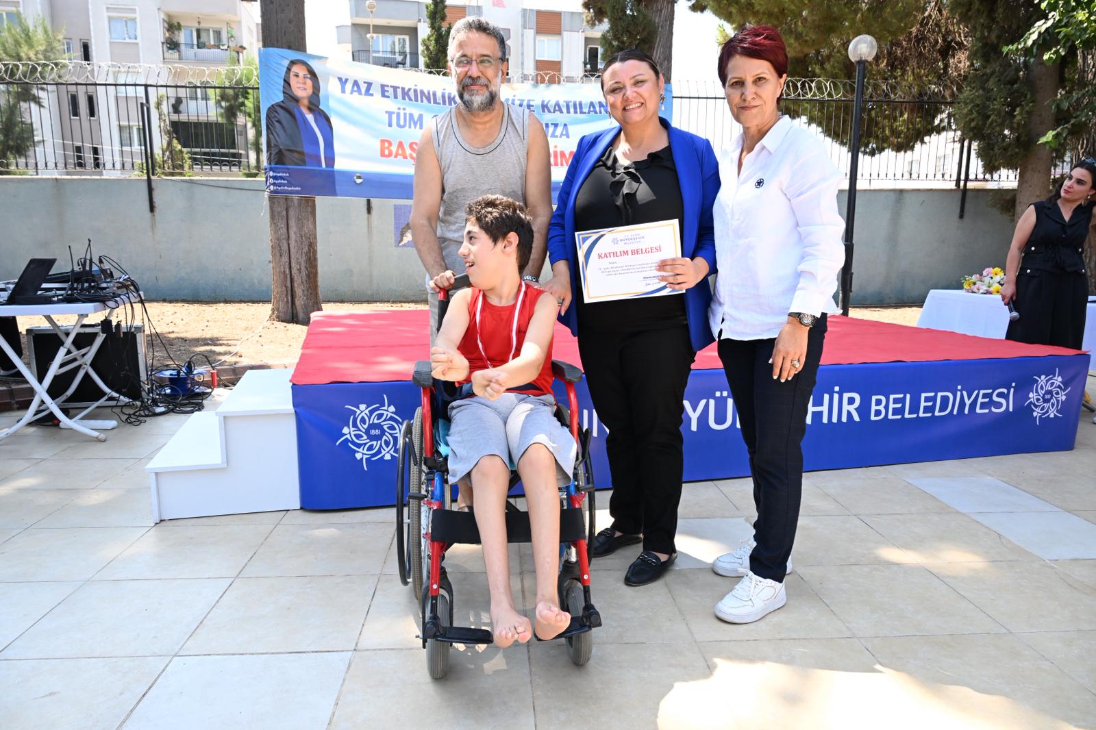 Aydın Büyükşehir Belediyesi’nin otizmli bireyler için düzenlediği yüzme eğitimleri, sertifika töreniyle tamamlandı. Eğitimlerini başarıyla tamamlayan özel çocuklar belgelerini alkışlar eşliğinde aldı.