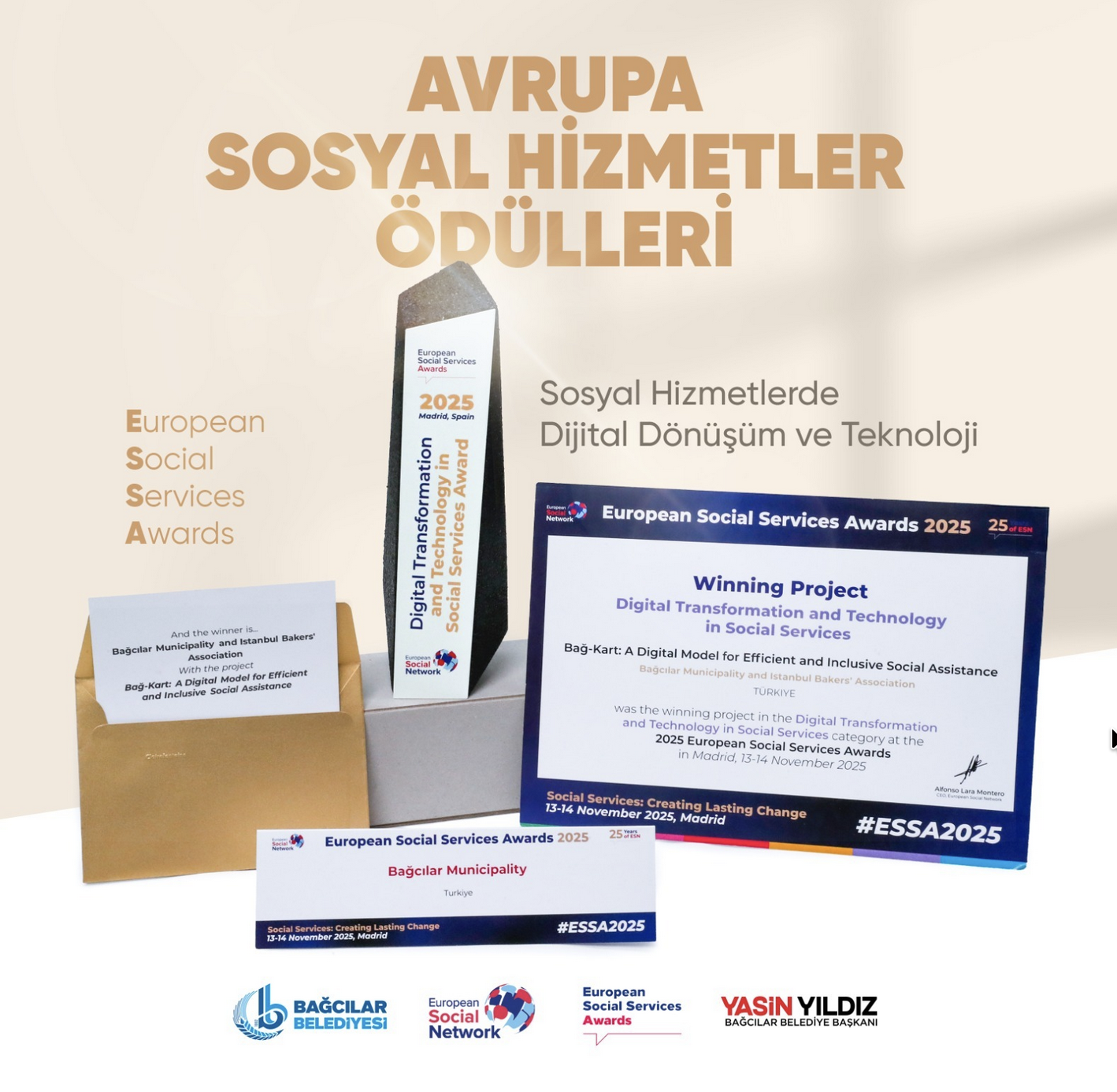 Bağcılar Belediyesi, Avrupa Sosyal Ağı (European Social Network – ESN) tarafından düzenlenen Avrupa Sosyal Hizmetler Ödülleri (ESSA) kapsamında ödül aldı. Ödül, “Bağ-Kart: Etkin ve Kapsayıcı Sosyal Yardım İçin Dijital Bir Model” projesi ile kazanıldı.