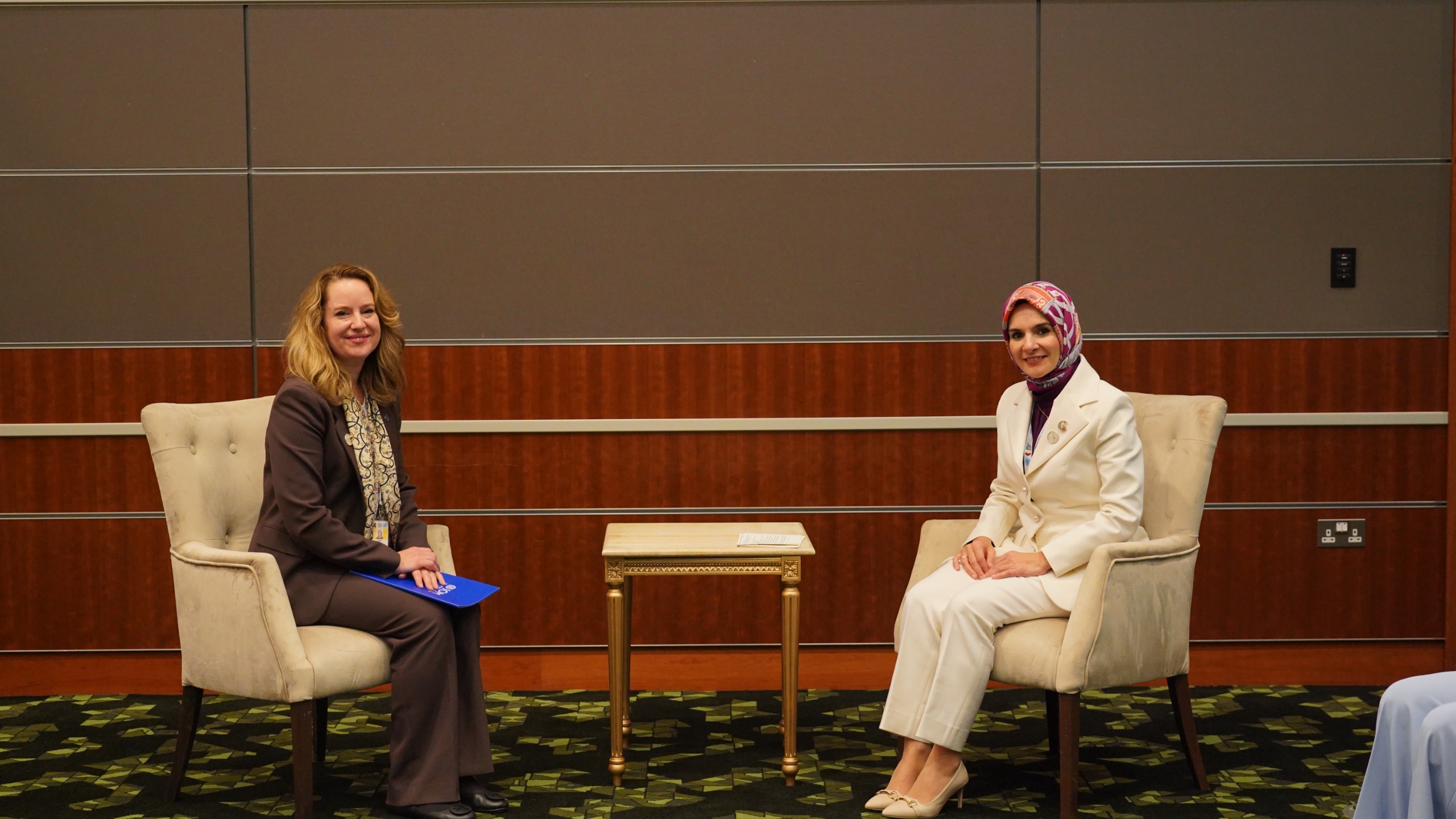 Bakan Göktaş, Sierra Leone Sosyal Refah Bakanı Melrose Karminty, İsveç Sosyal Hizmetler Bakanı Camilla Waltersson Grönvall ve Singapur Cumhuriyeti Toplumsal ve Aile Gelişim Bakanı Masagos Zulkifli ile kadın, çocuk, aile ve sosyal politikalar konularında görüş alışverişinde bulundu.
