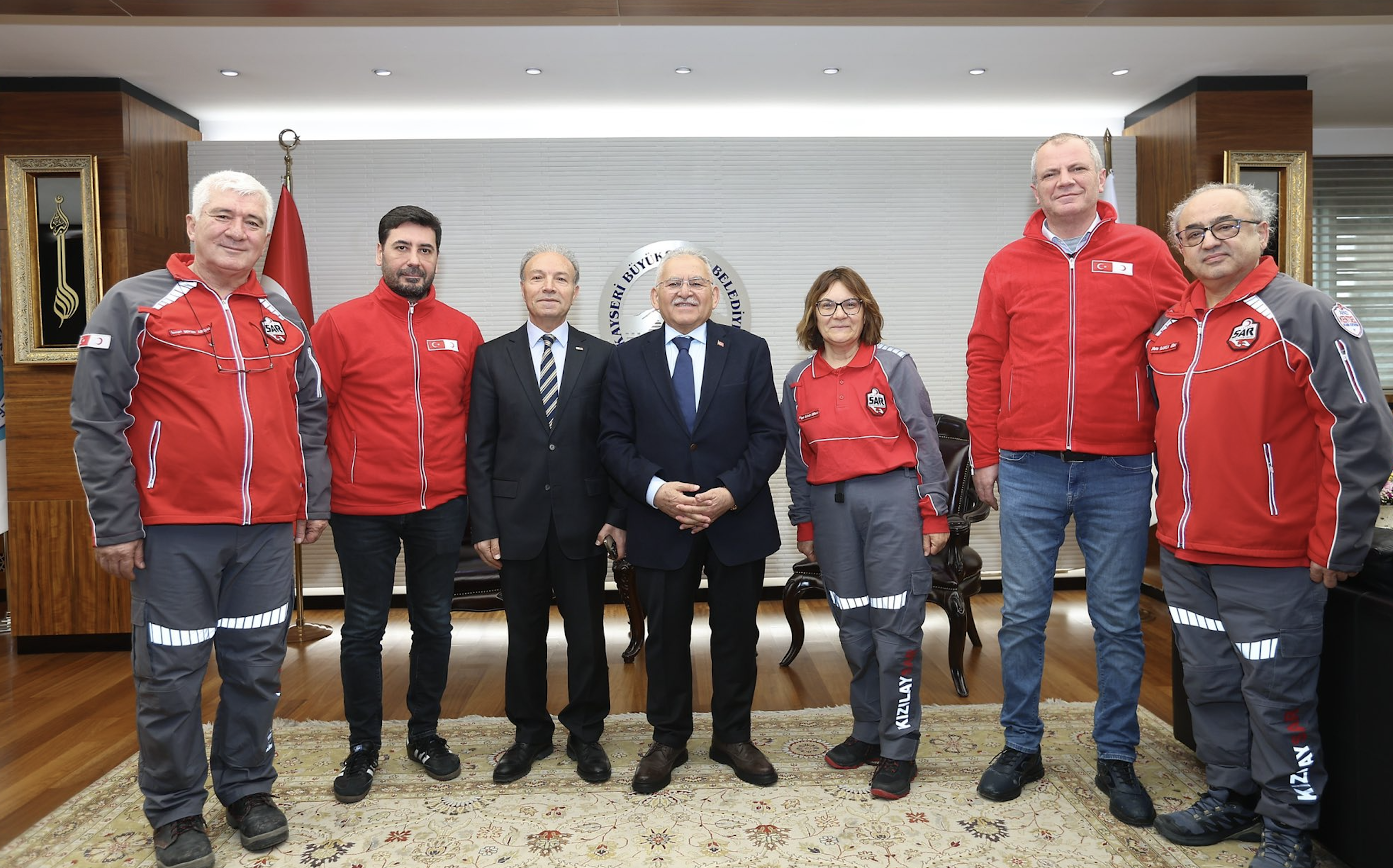 1-7 Mart Deprem Haftası kapsamında Türk Kızılay Kayseri Şube Başkanı Cafer Beydilli ve SAR Arama Kurtarma ekibi de belediyeyi ziyaret etti. Başkan Büyükkılıç, afetlere karşı bilinçli ve hazırlıklı olmanın önemini vurgularken, yürütülen çalışmalar için heyete teşekkür etti.