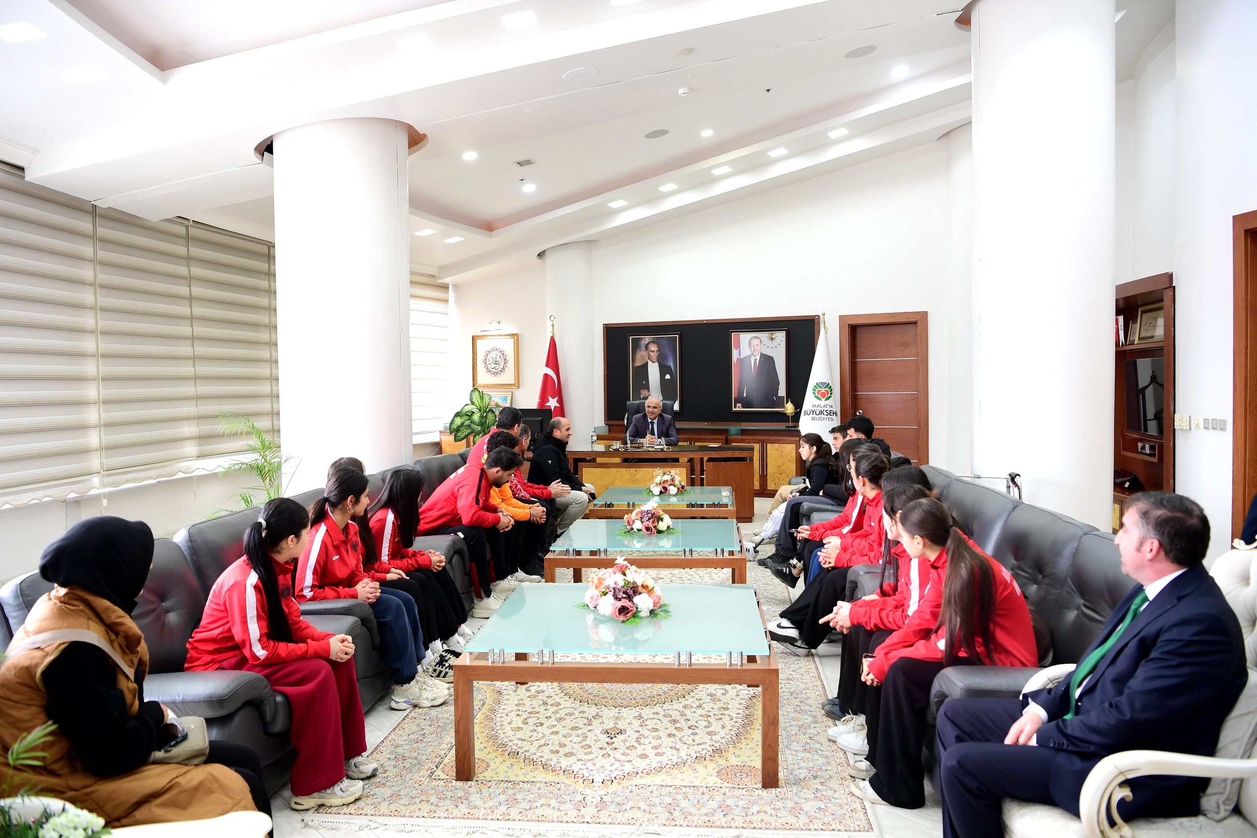 Malatya Büyükşehir Belediye Başkanı Sami Er, Büyükşehir Belediyespor Kulübü bünyesinde para yüzme, taekwondo, Wushu Kung Fu branşlarında katıldıkları ulusal ve uluslararası turnuvalarda derece yapan sporcuları makamında kabul etti.