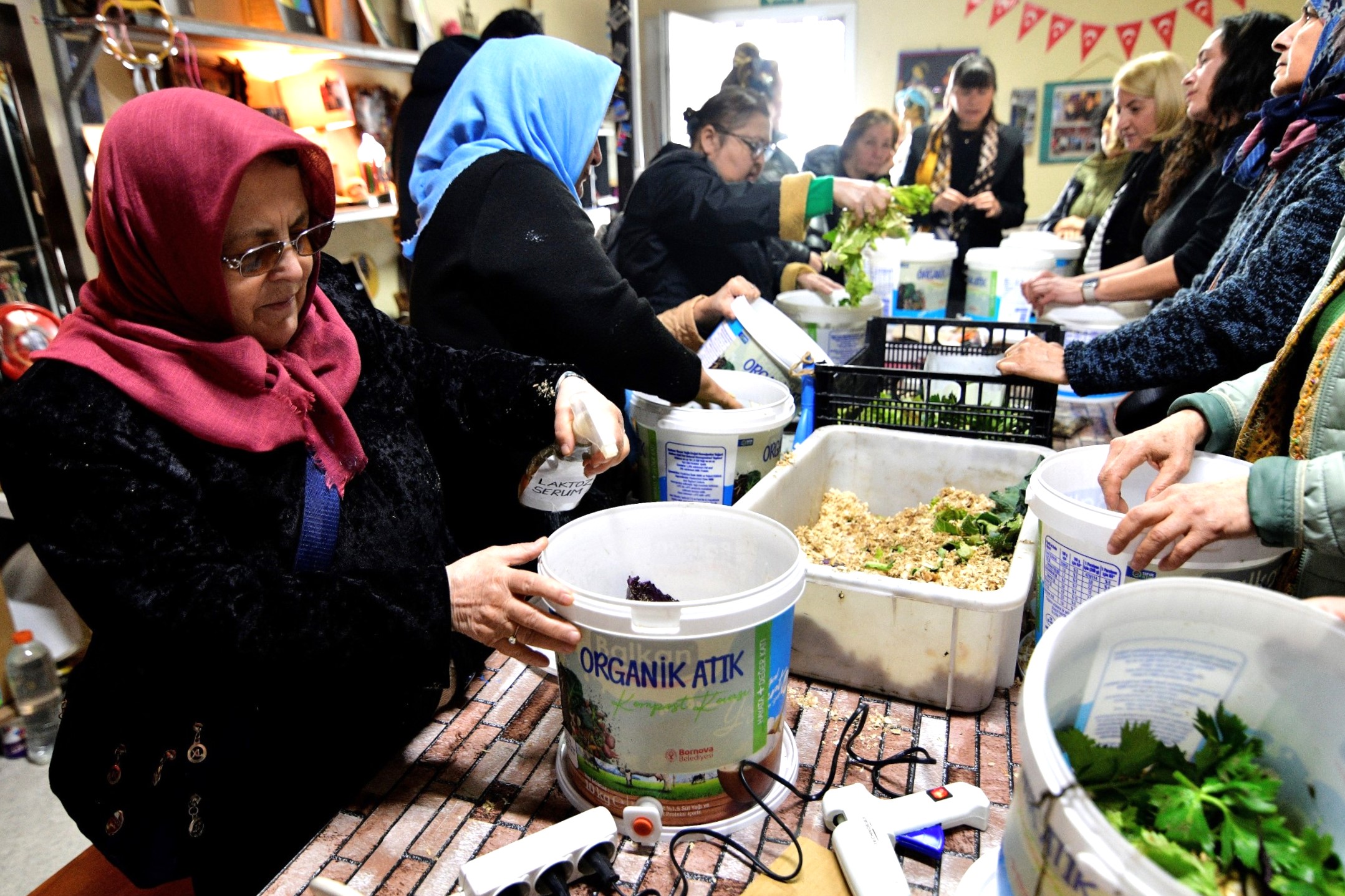 Eğitimi, Bornova Belediyesi İklim Değişikliği ve Sıfır Atık Müdürü Yüksek Çevre Mühendisi Fatma Mesutgil verdi. Kent bostanında üretim yapan kadınlar, geri dönüştürülmüş malzemelerle kendi kompost kovalarını oluştururken, kompostun oluşum sürecini ve organik atıkların doğru ayrıştırılmasını uygulamalı olarak öğrendi. Atölye sonunda üretilen kompostlar kent bostanında kullanılarak sebze ve bitkilerin doğal yöntemlerle beslenmesine katkı sundu.