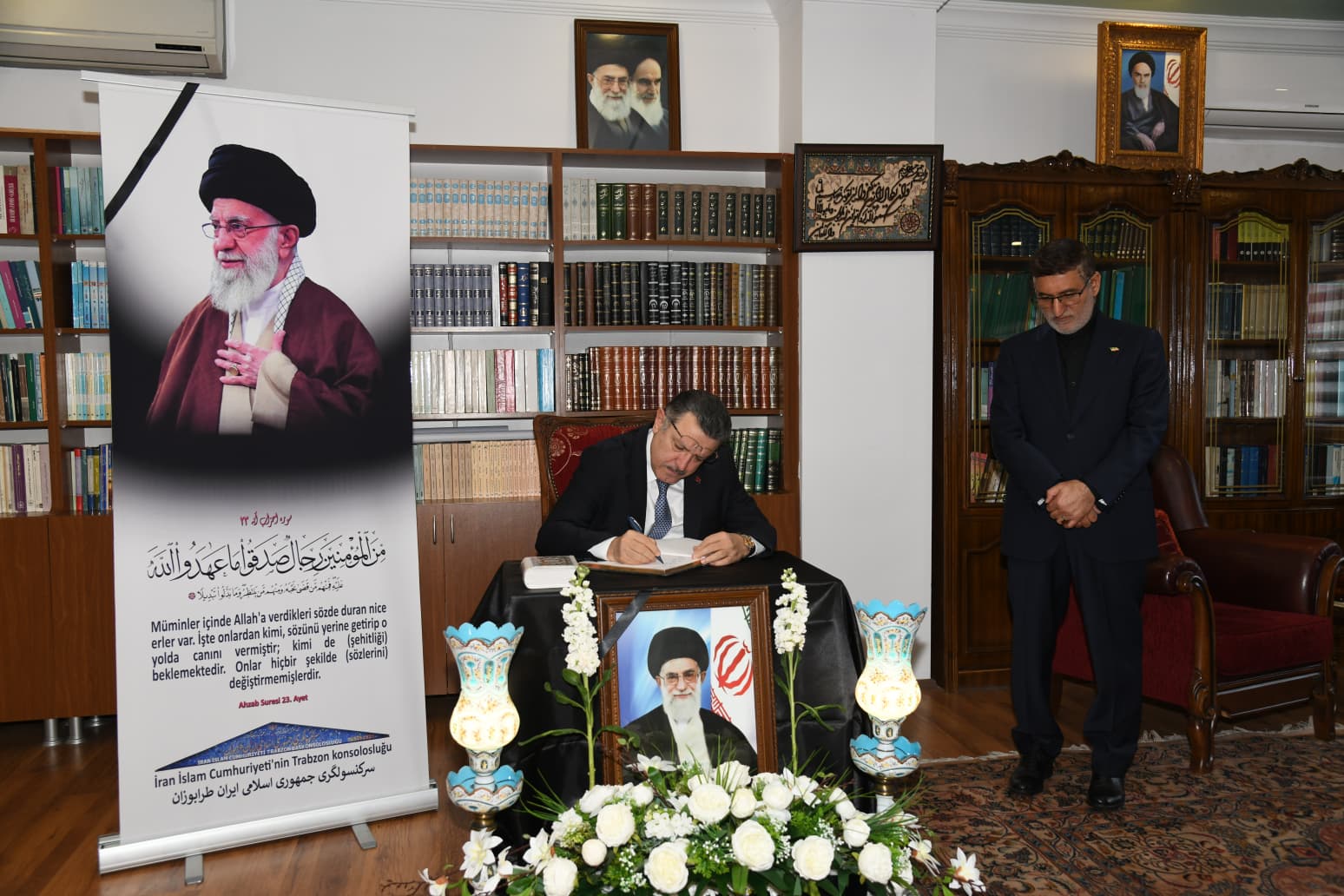 Ziyaretin sonunda Başkan Genç, Ayetullah Ali Hamaney ve savaşta ölen İranlılar için açılan taziye defterini imzaladı.