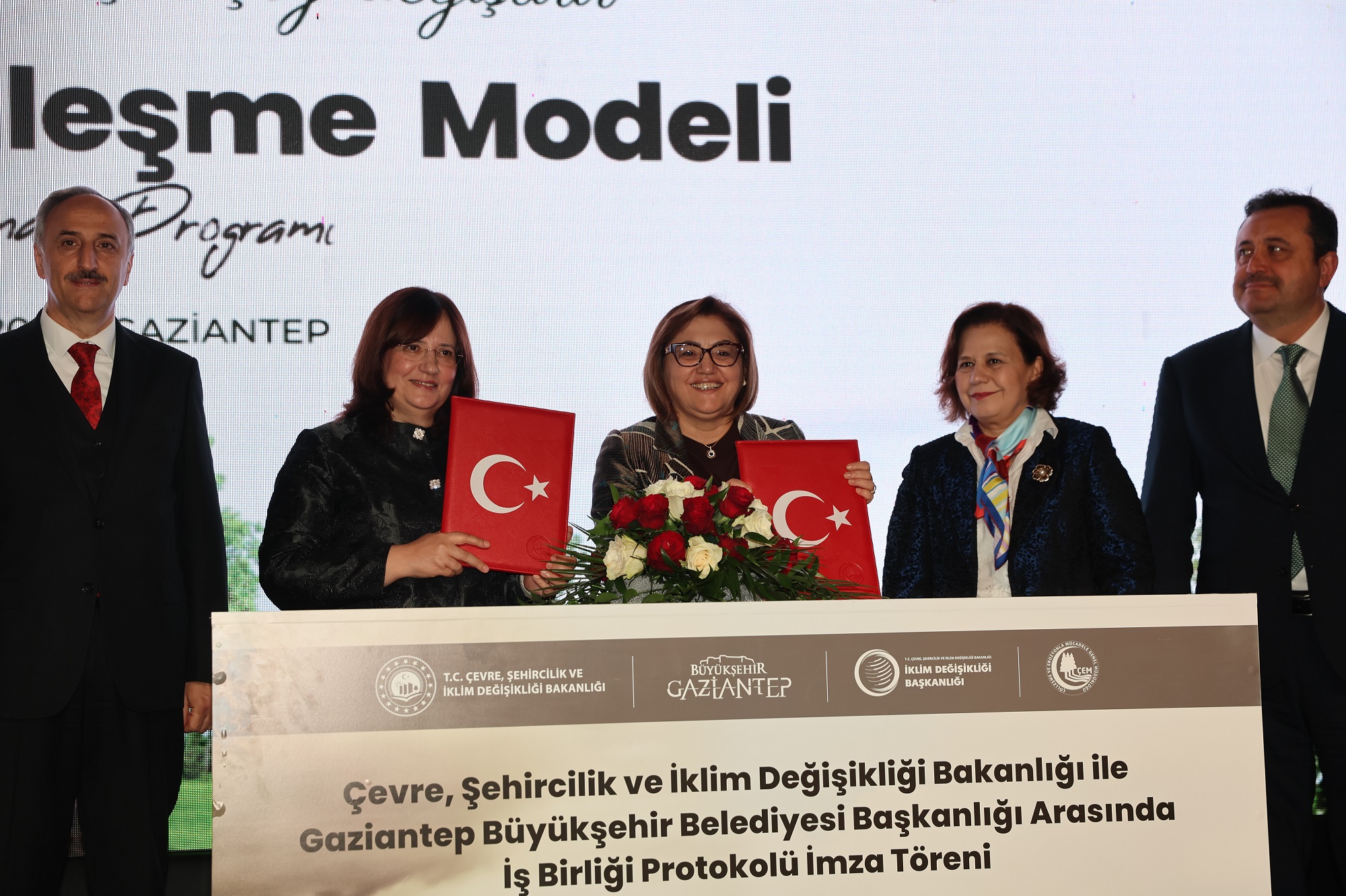 Programda Çevre, Şehircilik ve iklim Değişikliği Bakanlığı ile Gaziantep Büyükşehir Belediyesi arasında, kentsel ısı adası etkisinin azaltılması ve iklim değişikliğine uyum çalışmalarını güçlendirmeyi amaçlayan “Yapay Zeka Destekli Analiz ve Modelleme Projesi” kapsamında iş birliği protokolü imzalandı.