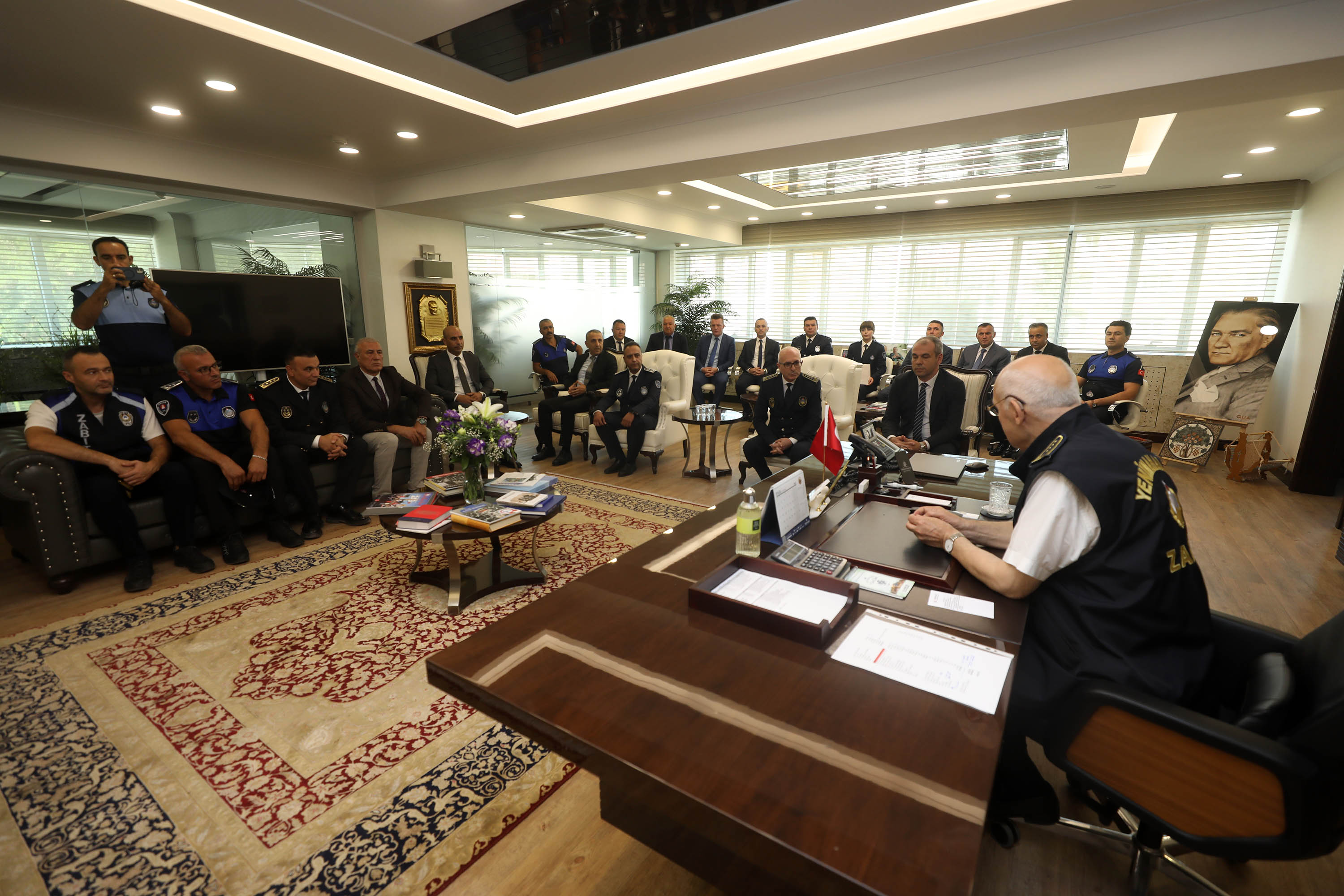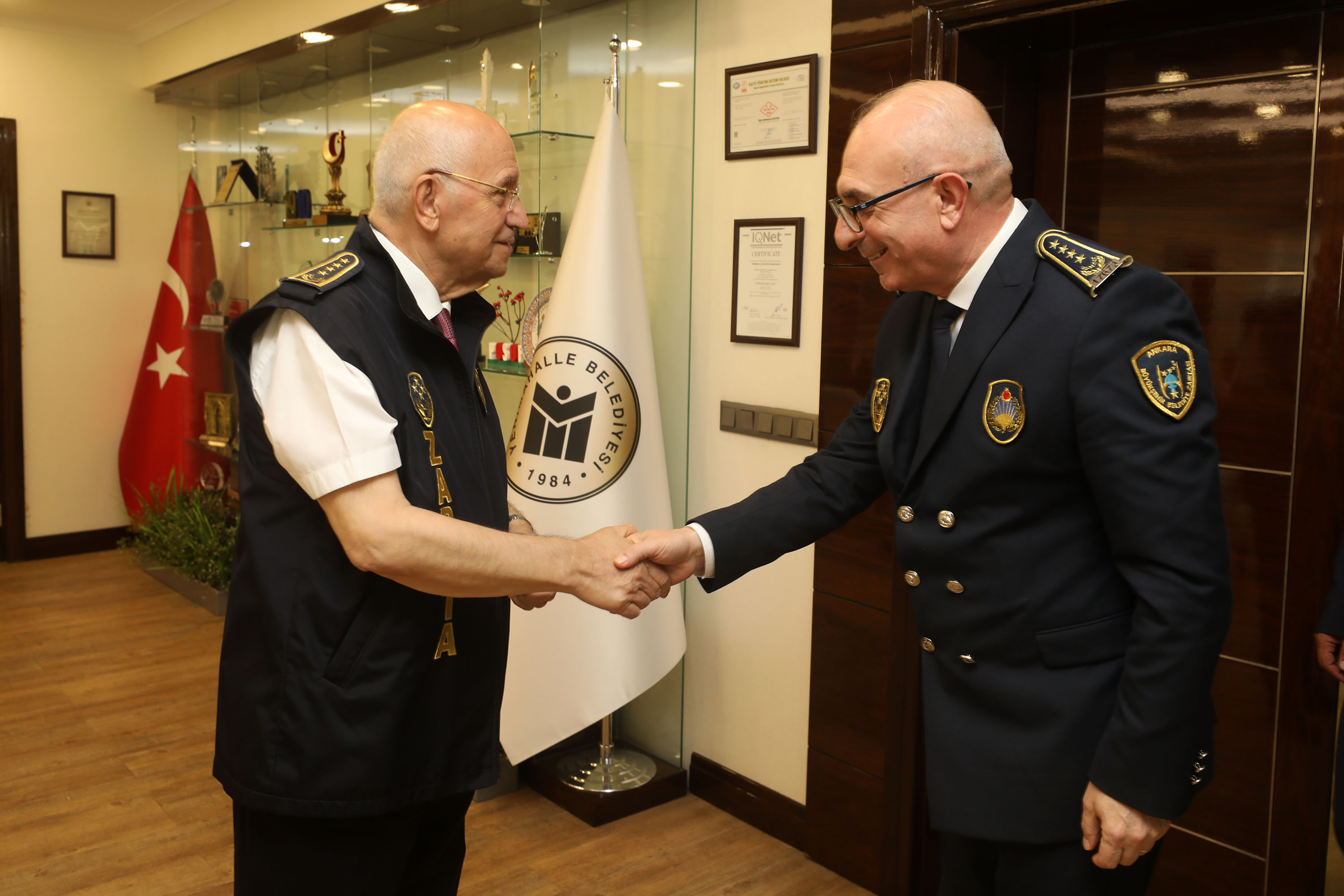 Yenimahalle Belediye Başkanı Fethi Yaşar, Ankara Büyükşehir Belediyesi Zabıta Daire Başkanı Olcay Erdal ve ilçe belediyelerin Zabıta Müdürlerini Zabıta Teşkilatı’nın 199’uncu kuruluş yılı ve Zabıta Haftası sebebiyle makamında ağırladı.