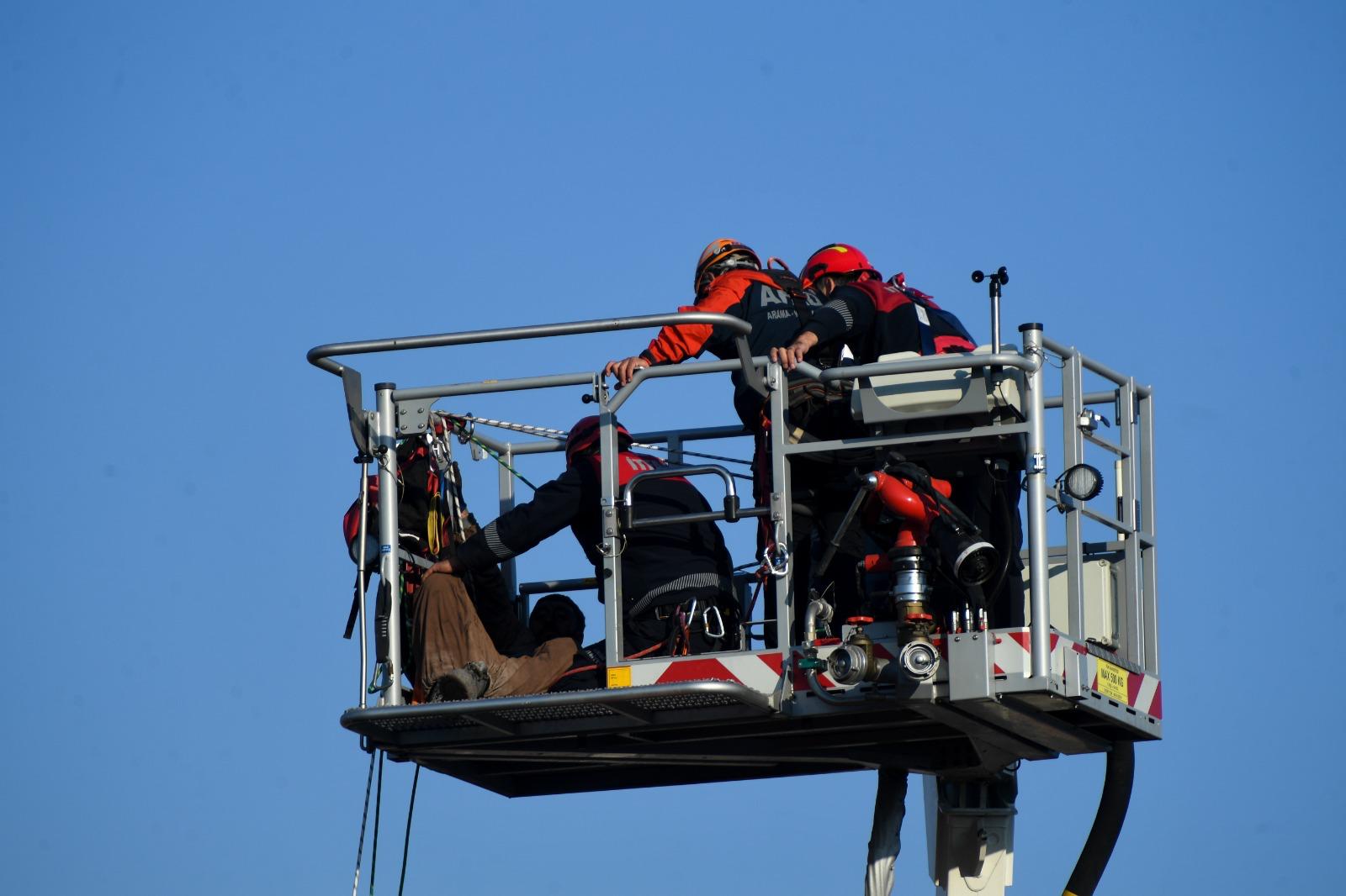 Ekipler, 90 metrelik merdivenli araçla bacanın üst kısımlarına doğru çıkarak işçilere ulaştı. Ekipler, yaklaşık dört saatlik titiz ve kontrollü çalışmaların ardından işçileri mahsur kaldıkları yerden kurardı.