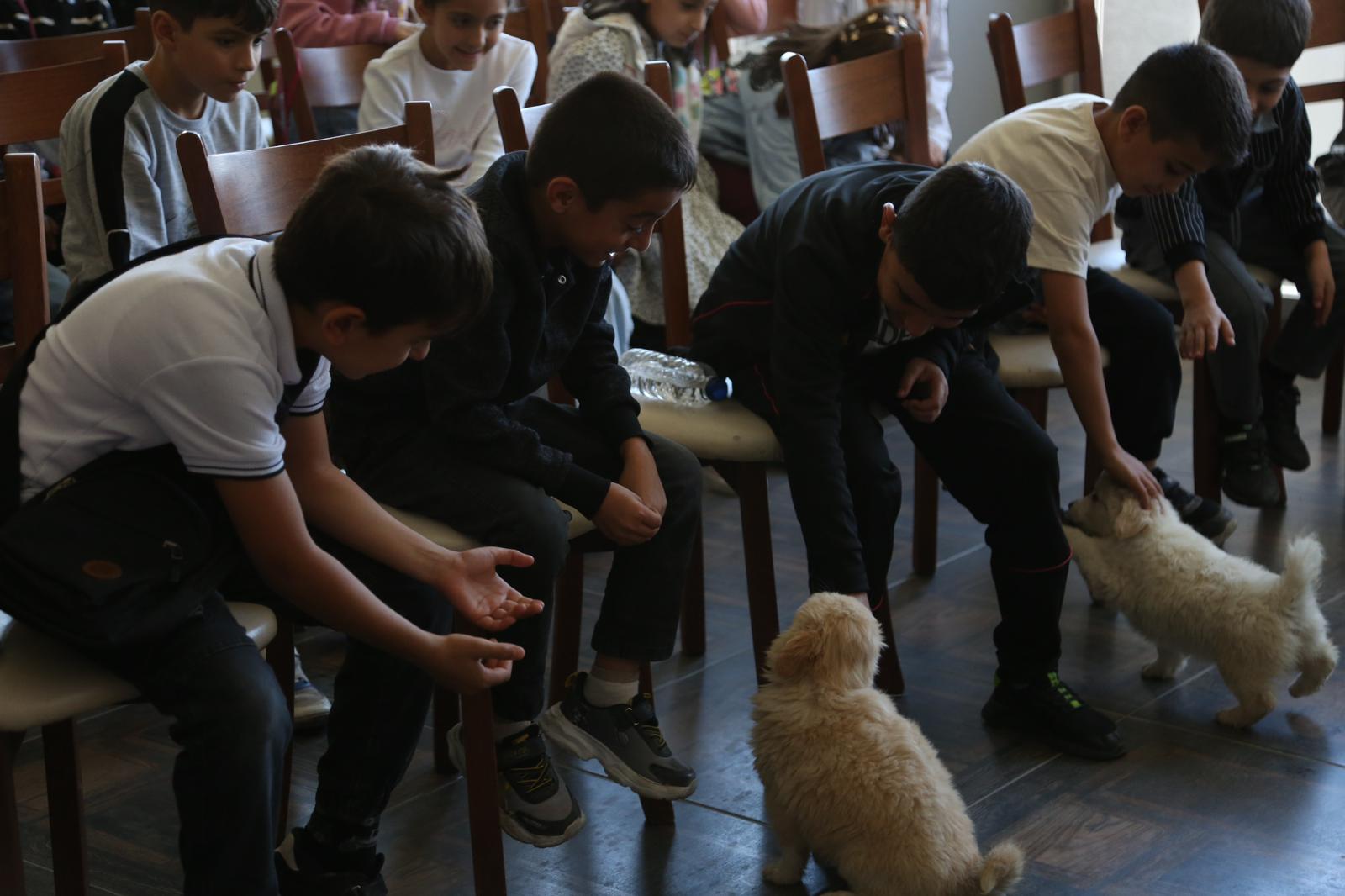 Veteriner İşleri Dairesi Başkanlığı ekipleri ve hayvanseverlerin katıldığı programda çocuklara hayvanların korunması, bakımı ve yaşama hakları hakkında bilgi verildi. Öğrenciler barınaktaki kedi ve köpeklerle vakit geçirirken veteriner hekimlere merak ettikleri soruları yöneltti.