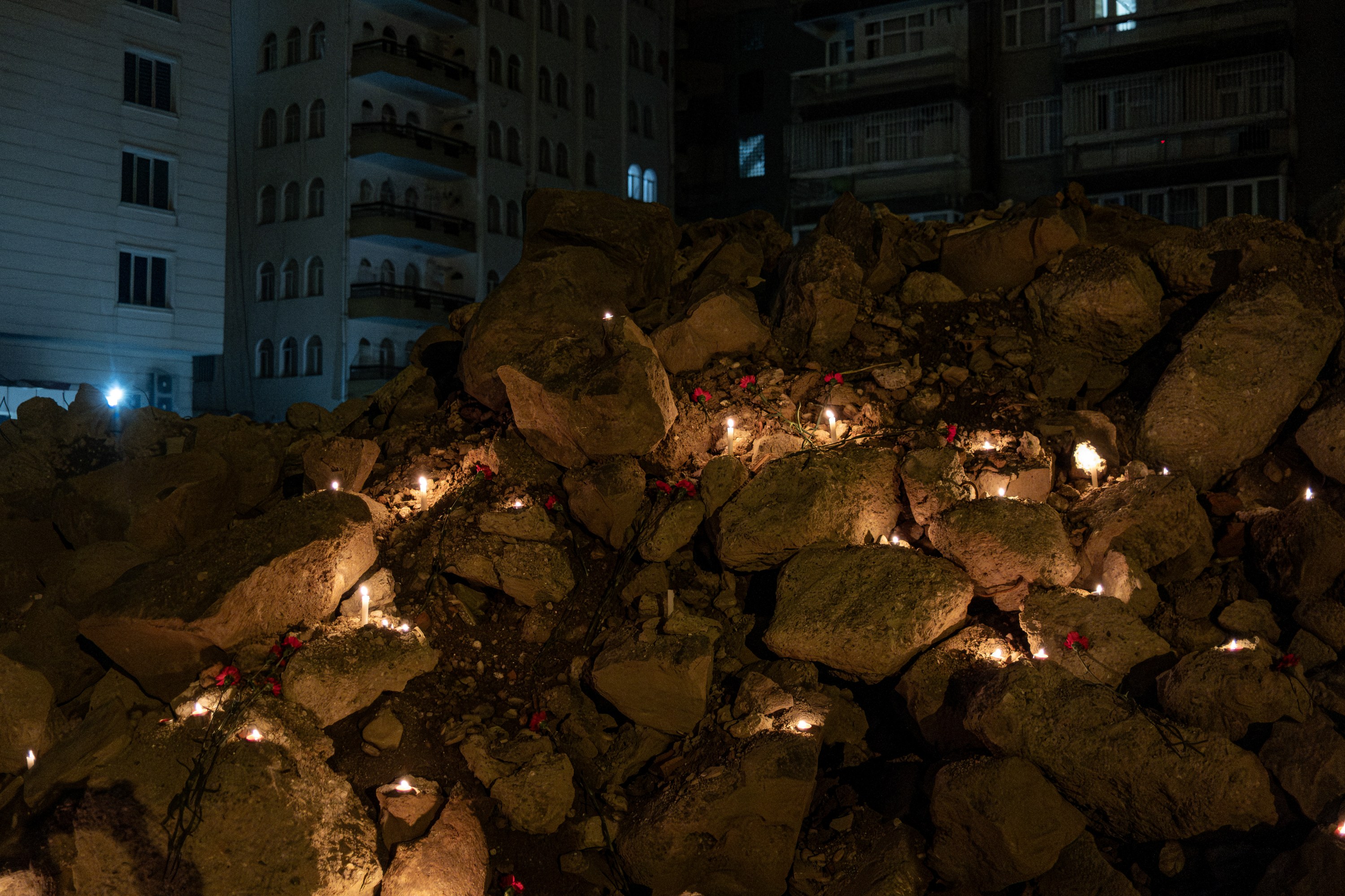 Depremin yaşandığı saat 04.17’de yapılan anmada, enkaz alanında mumlar yakılarak karanfiller bırakıldı.