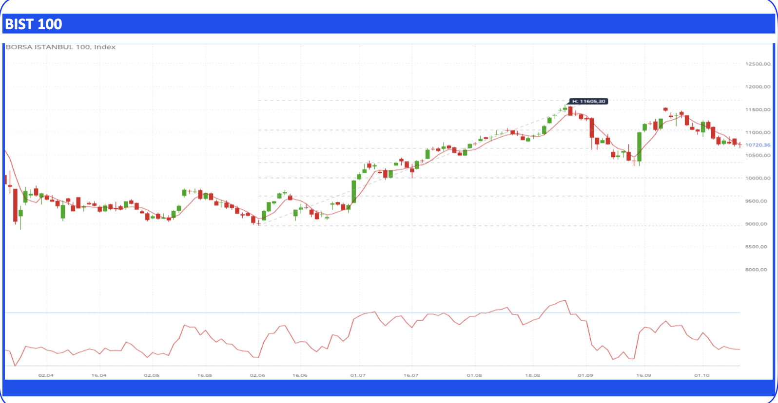 '' BIST-100 Endeksi cuma gününü yatay bir kapanışla 10.720 puandan tamamladı. Yurt içi ve küresel gelişmeler yakından izlenirken, güne zayıf bir açılışla başlamasını beklediğimiz endekste kısa vadede 100 günlük üssel ortalamayı (10.574) ilk güçlü destek noktası olarak izleyeceğiz. 100 günlük ortalama kırılır ve altında saatlik kapanışlar yaşanırsa satıcılı seyrin etkisini sürdürebileceği endekste 10.500 – 10.435 – 10.400 ve 10.350 seviyelerine doğru geri çekilmeler gündeme gelebilir.