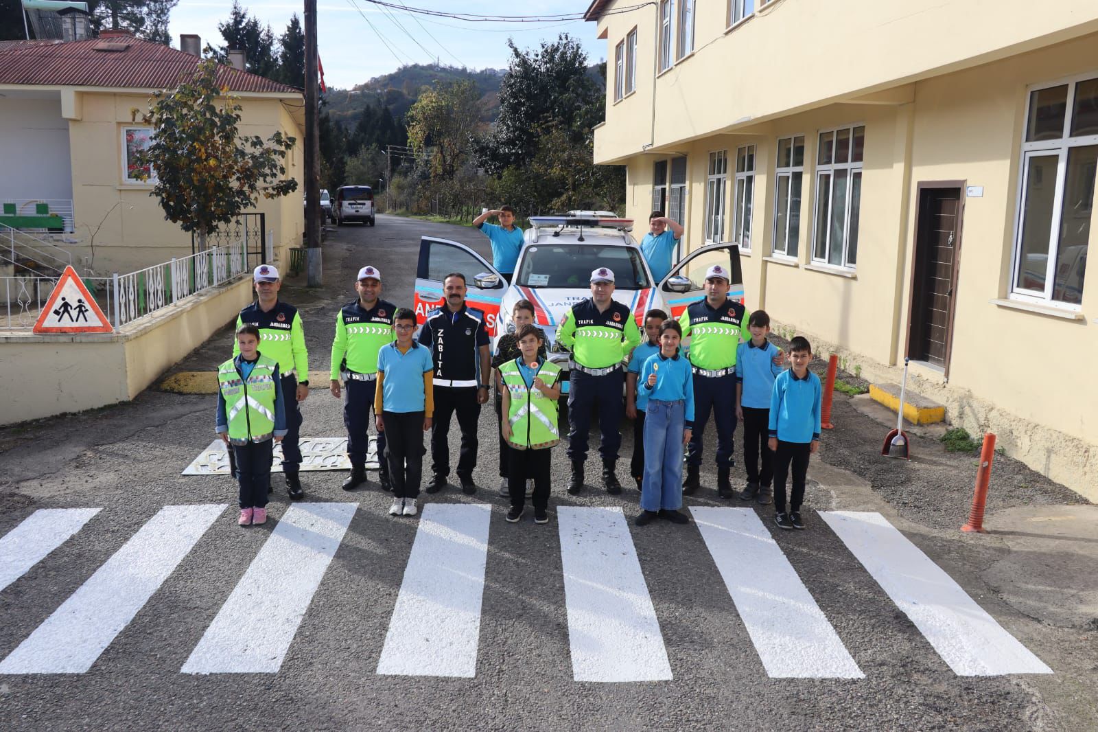 Giresun Belediyesi Zabıta Müdürlüğü bazı köy okullarının önünde güvenli ulaşımın sağlanması amacıyla yaya geçidi çalışması yaptı.