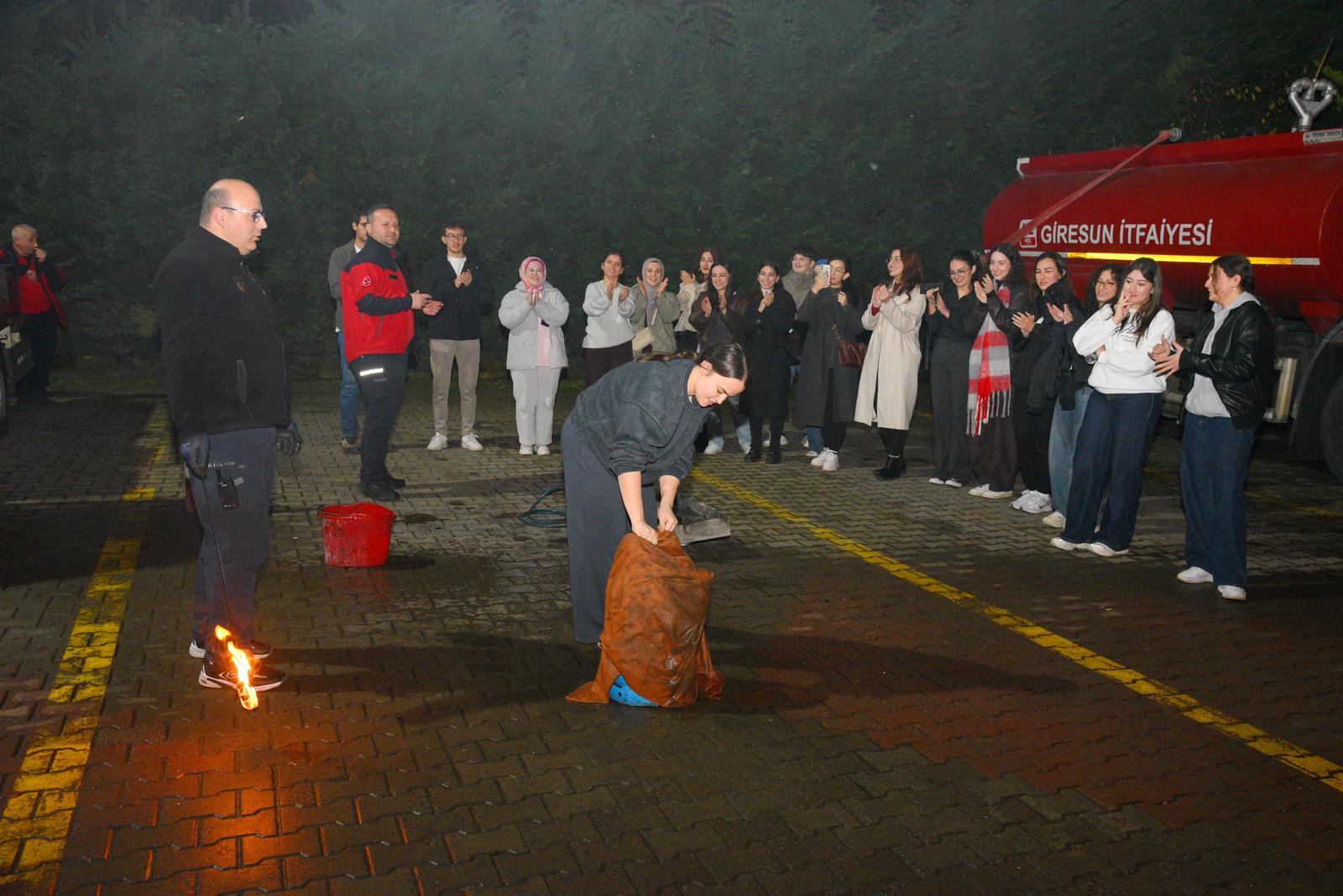 Giresun İtfaiye Müdürlüğü tarafından, Giresun Üniversitesi Tıp Fakültesi öğrencilerine yönelik teorik ve uygulamalı yangın güvenliği eğitimi düzenlendi.