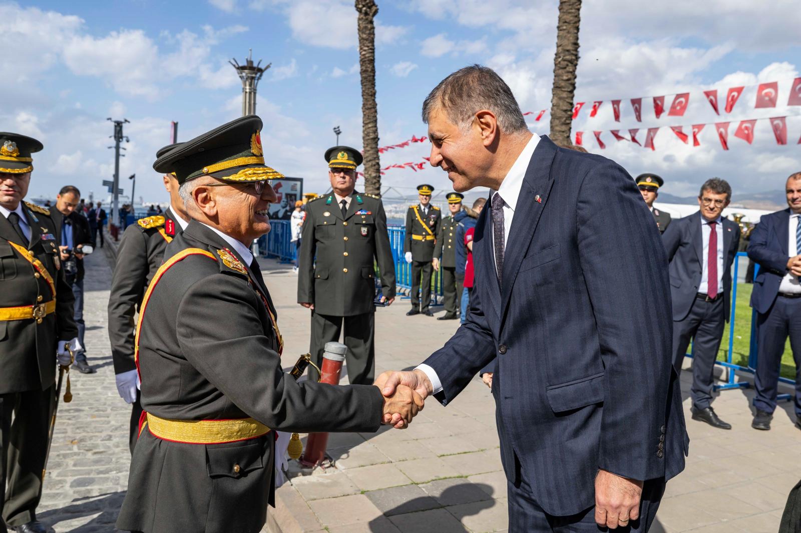 Törende İzmir Valisi Süleyman Elban, Ege Ordusu ve Garnizon Komutanı Orgeneral İrfan Özsert’in yanı sıra CHP İzmir Milletvekili Ednan Arslan, Ümit Özlale, Seda Kaya Ösen, MHP İzmir Milletvekili Tamer Osmanağaoğlu ile siyasi parti temsilcileri, ordu ve emniyet mensupları, oda, dernek ve sivil toplum kuruluşlarının temsilcileri yer aldı.
