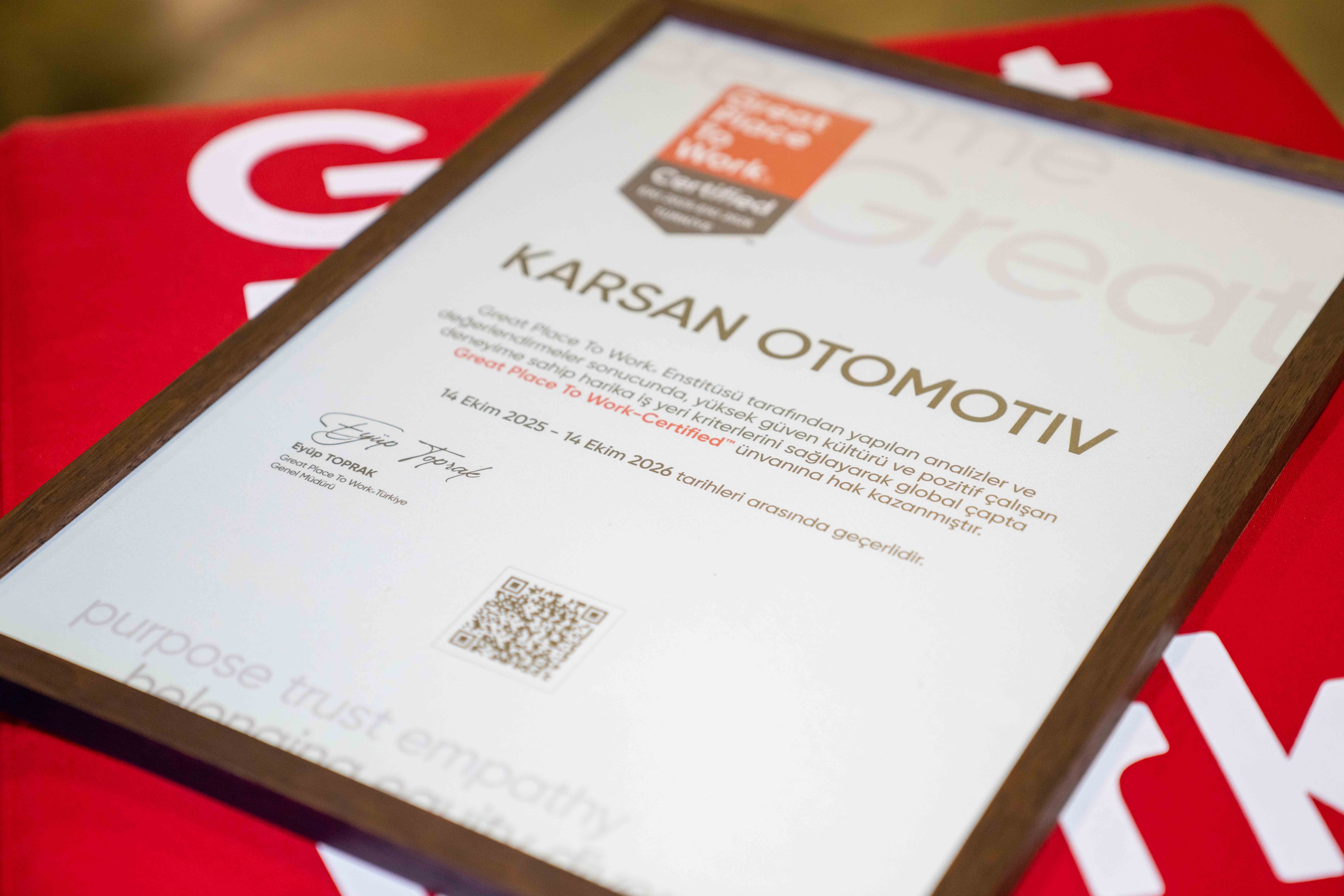 Great Place to Work® sertifikası; güven, saygı, hakkaniyet, gurur ve takım ruhu gibi beş temel kriter üzerinden yapılan kapsamlı bir analiz sonucunda veriliyor. Şirket, Great Place to Work sertifikasını, Bursa’da düzenlenen bir törenle teslim aldı. Törende konuşan Karsan CEO’su Okan Baş, sertifikayı Great Place to Work temsilcisinden teslim alarak, elde edilen bu önemli başarıyı tüm Karsan çalışanlarıyla paylaştı. Etkinlikte, Karsan’ın sürdürülebilir kurum kültürü vizyonu ve çalışan bağlılığını artırmaya yönelik yeni hedefleri de paylaşıldı. Karsan, Great Place to Work® tarafından ilk kez Ekim 2024’te “Çalışmak İçin Harika Bir Şirket” olarak sertifikalandırılmıştı. 2025 yılı ise, bu alandaki başarılarını daha da ileriye taşıdığı bir dönem oldu.