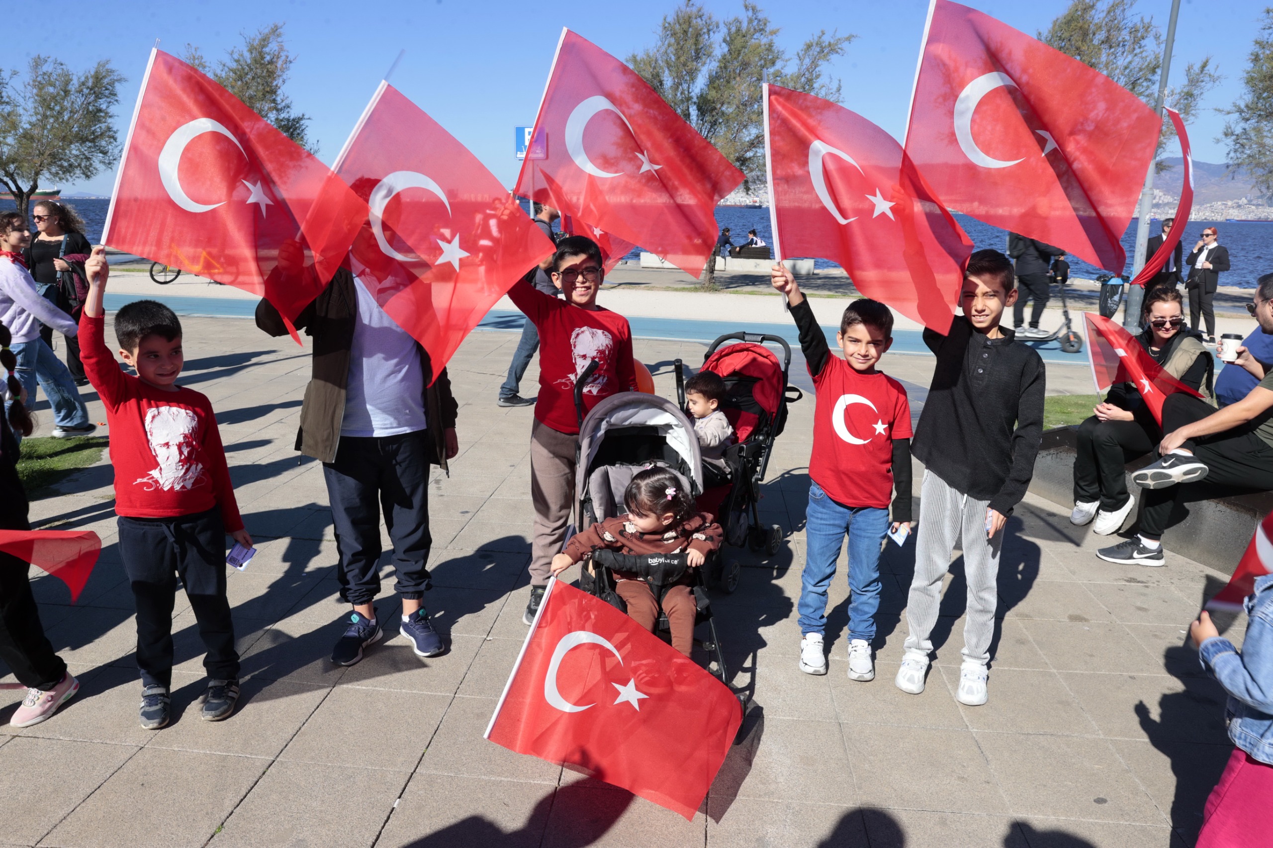 İzmirliler, Konak Belediyesi’nin düzenlediği Cumhuriyet Bayramı kutlamaları için Karantina Meydanı’nda bir araya geldi.