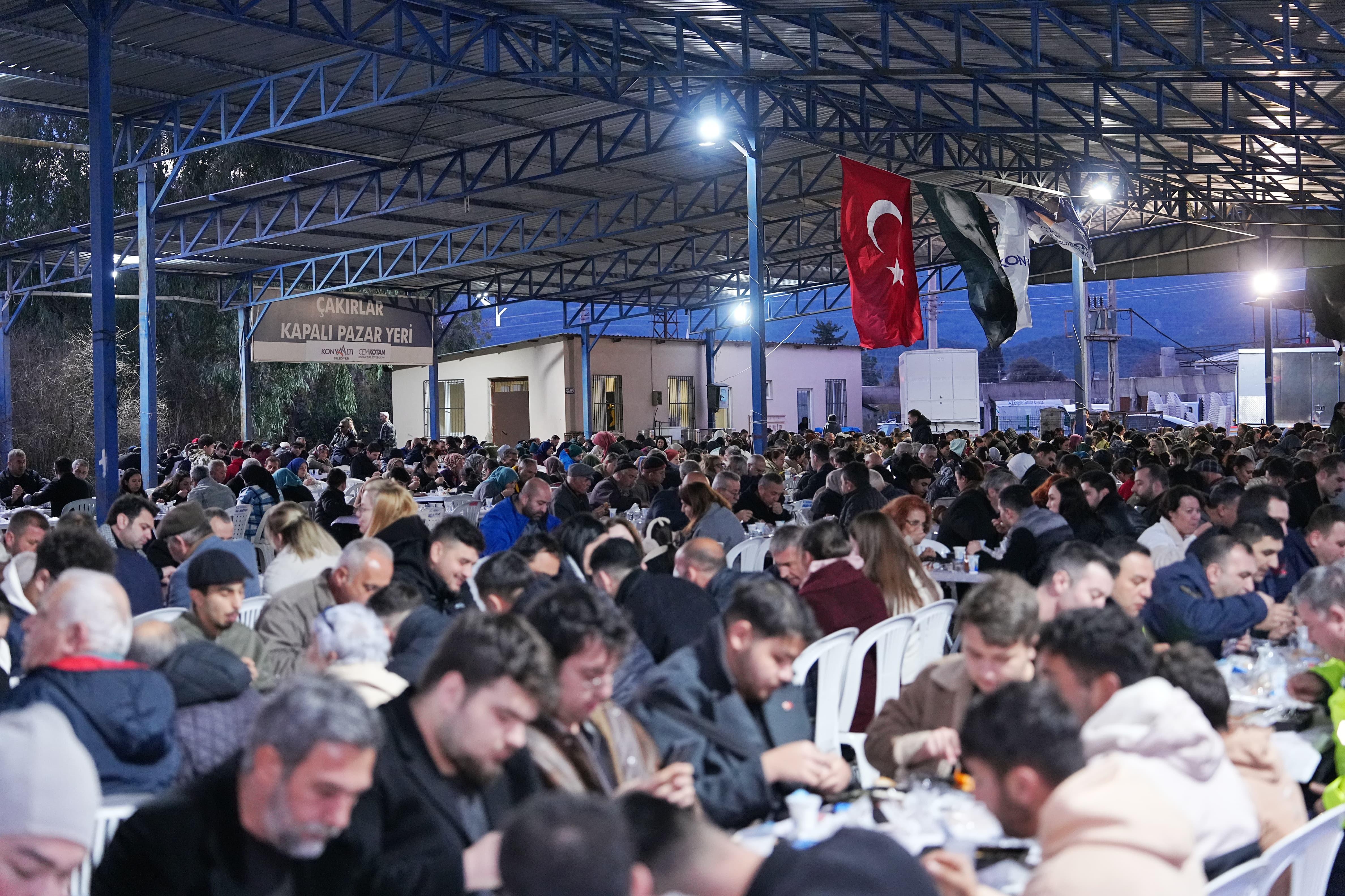 Konyaaltı Belediye Başkanı Cem Kotan, Konyaaltı Belediyesi’nin Çakırlar Kapalı Pazar Yeri’nde düzenlediği iftar yemeğinde vatandaşlarla buluşarak aynı sofrada iftar yaptı.