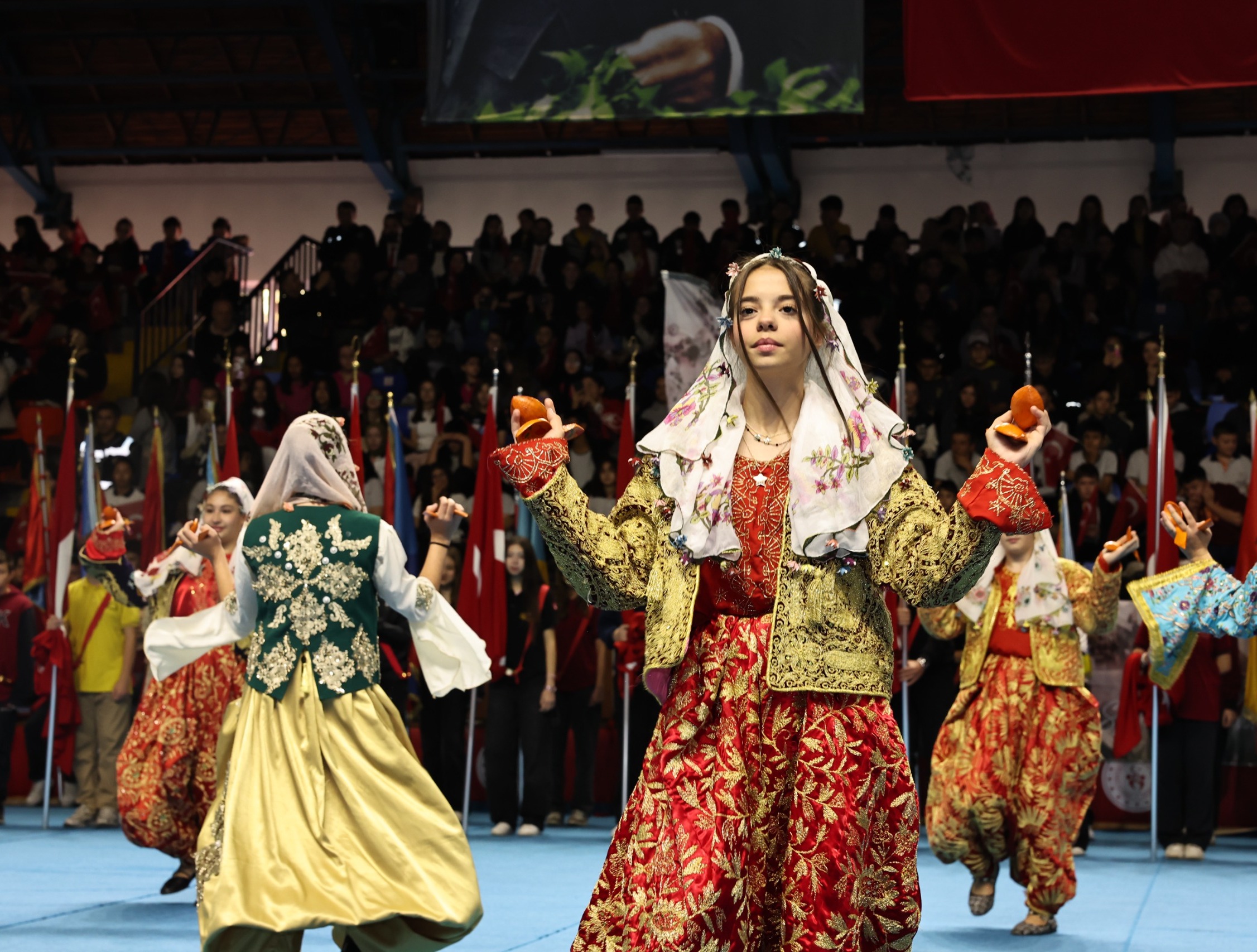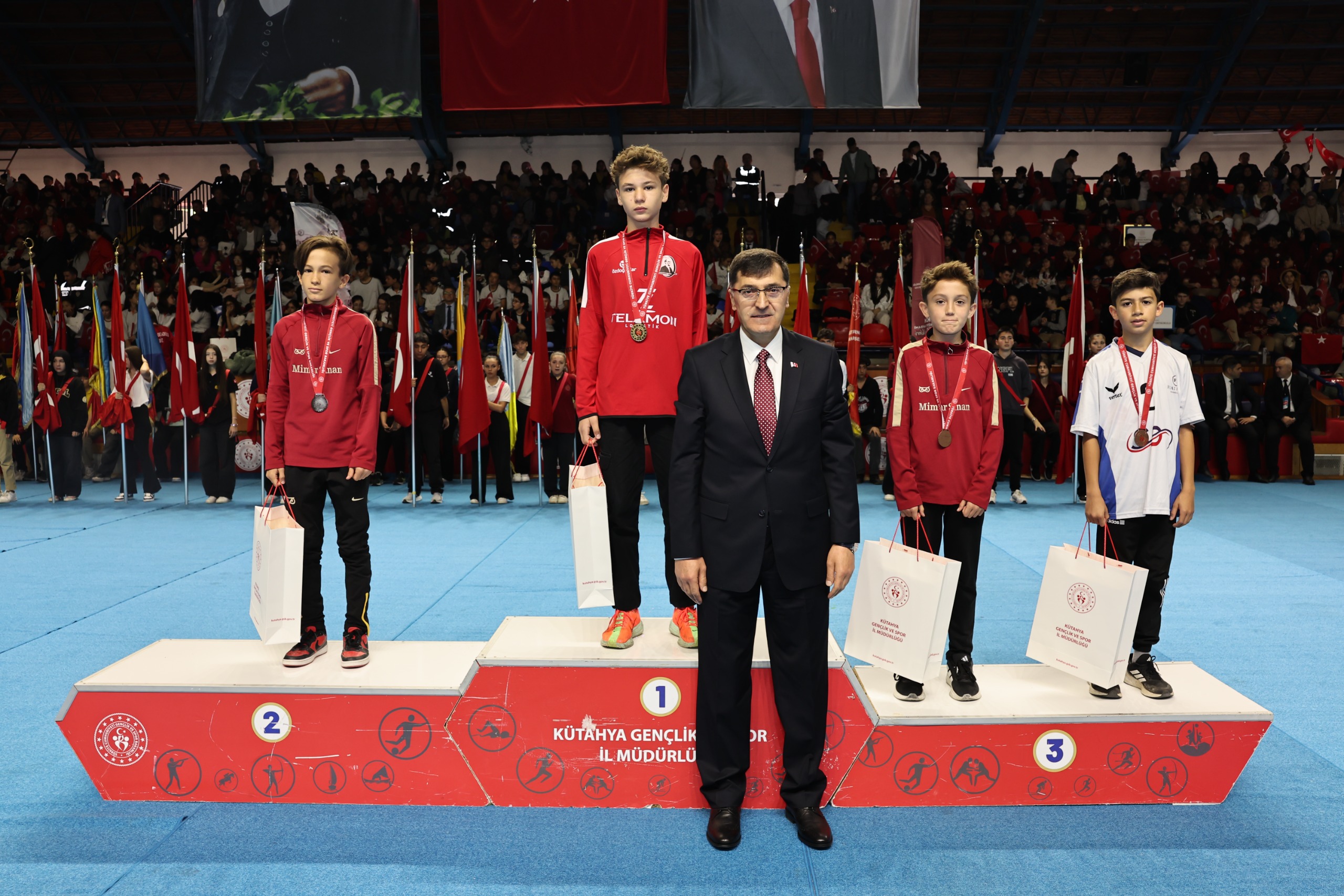 Saygı duruşu ve İstiklal Marşı’nın okunmasıyla başlayan törende, Vali Işın’ın günün anlam ve önemine ilişkin konuşmasının ardından öğrenciler tarafından şiirler okundu. Halk oyunları gösterisiyle renklenen tören, dereceye giren sporculara ödüllerinin verilmesi ve Tugay Bandosu’nun müzik dinletisiyle devam etti.