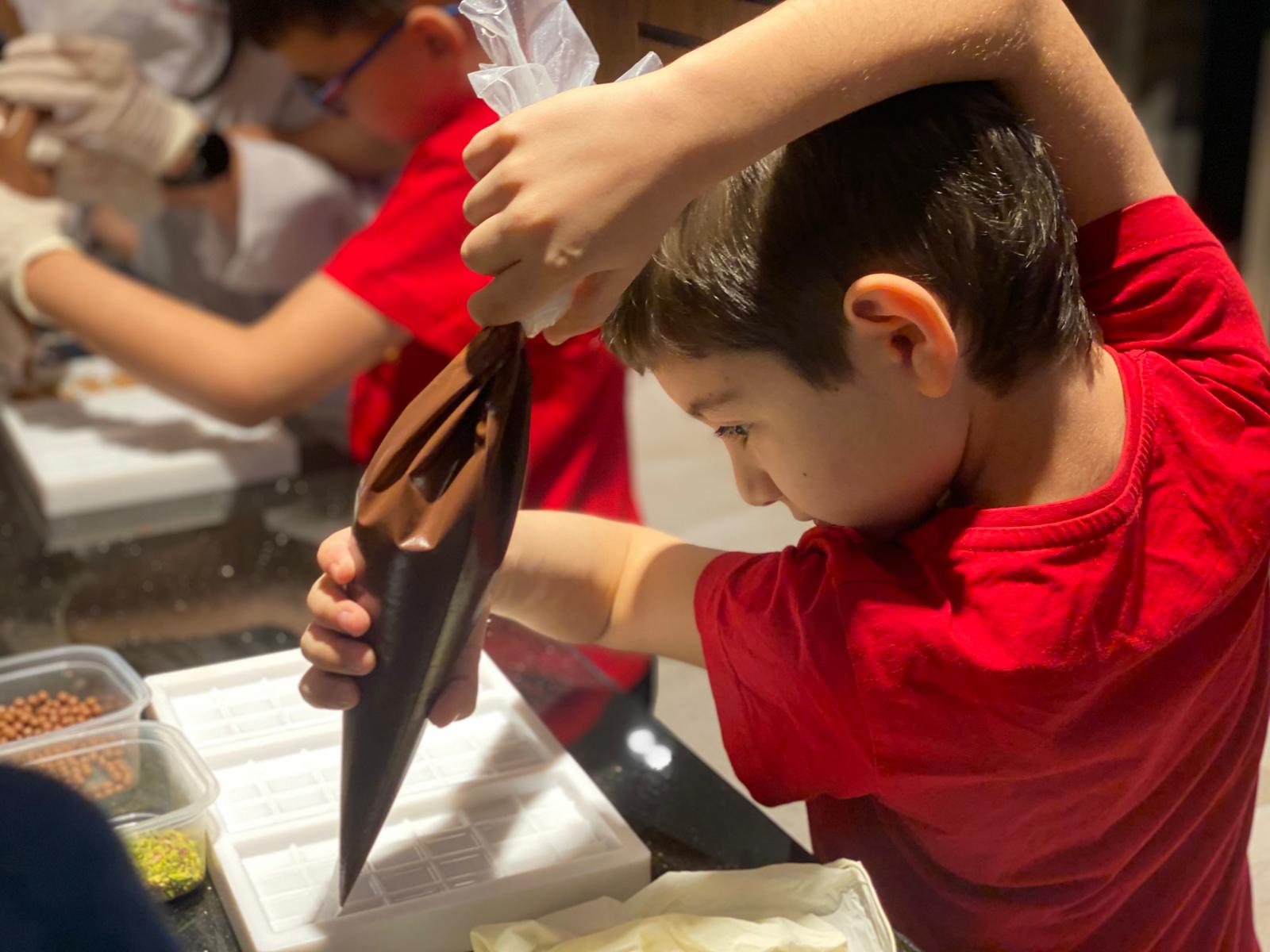 Ara tatil çocukların anneleriyle birlikte katıldığı Çikolata Atölyesi ile sona erdi. Callebaut Çikolata’nın değerli desteğiyle düzenlenen atölyede çocuklar ve anneleri, şeflerden çikolatanın yapım aşamalarını öğrendi. Birlikte kendi çikolatalarını hazırlayan çocuklar, el emeği ürünlerini paketleyerek tatili tatlı bir anı ile tamamladı.