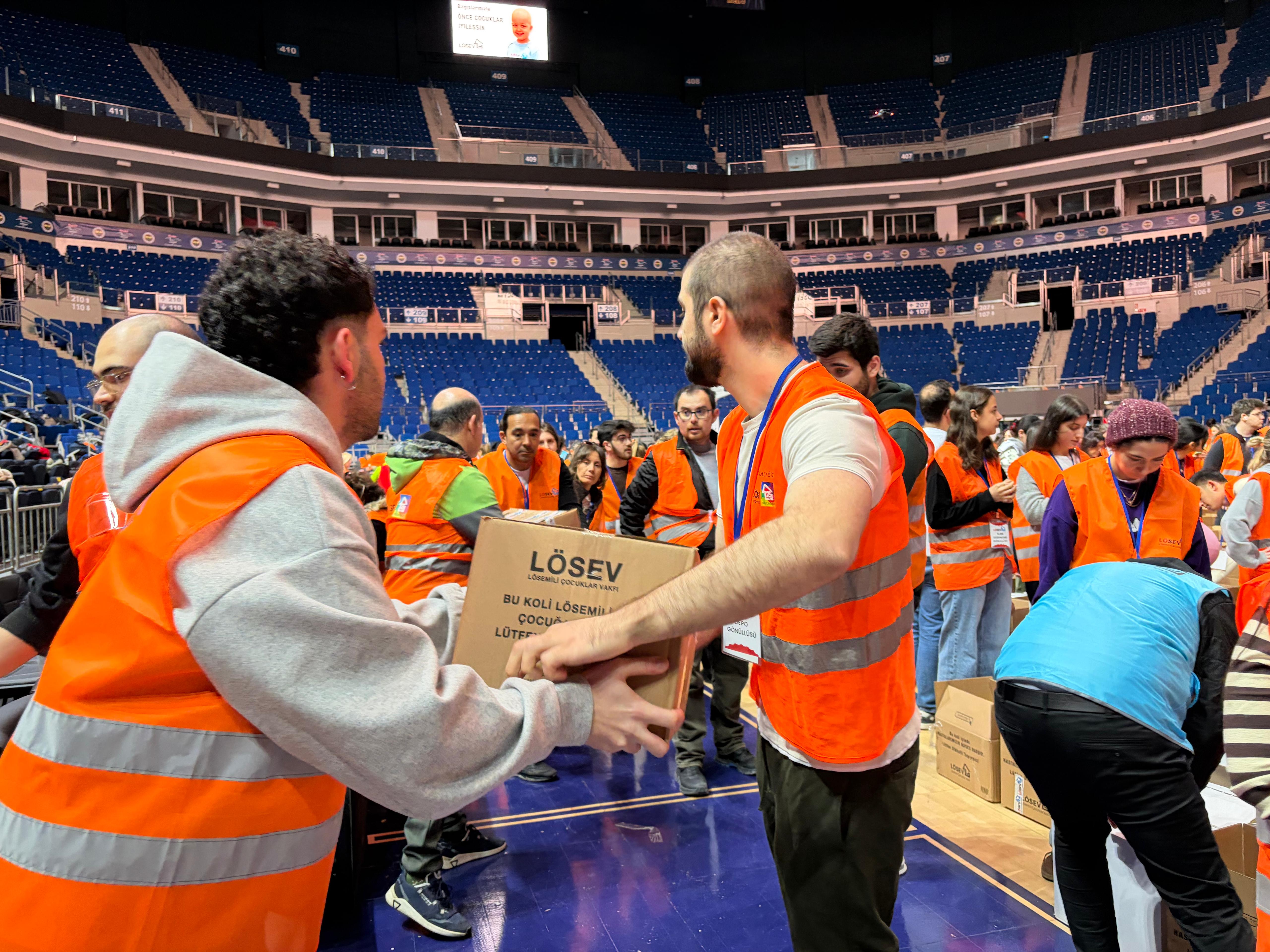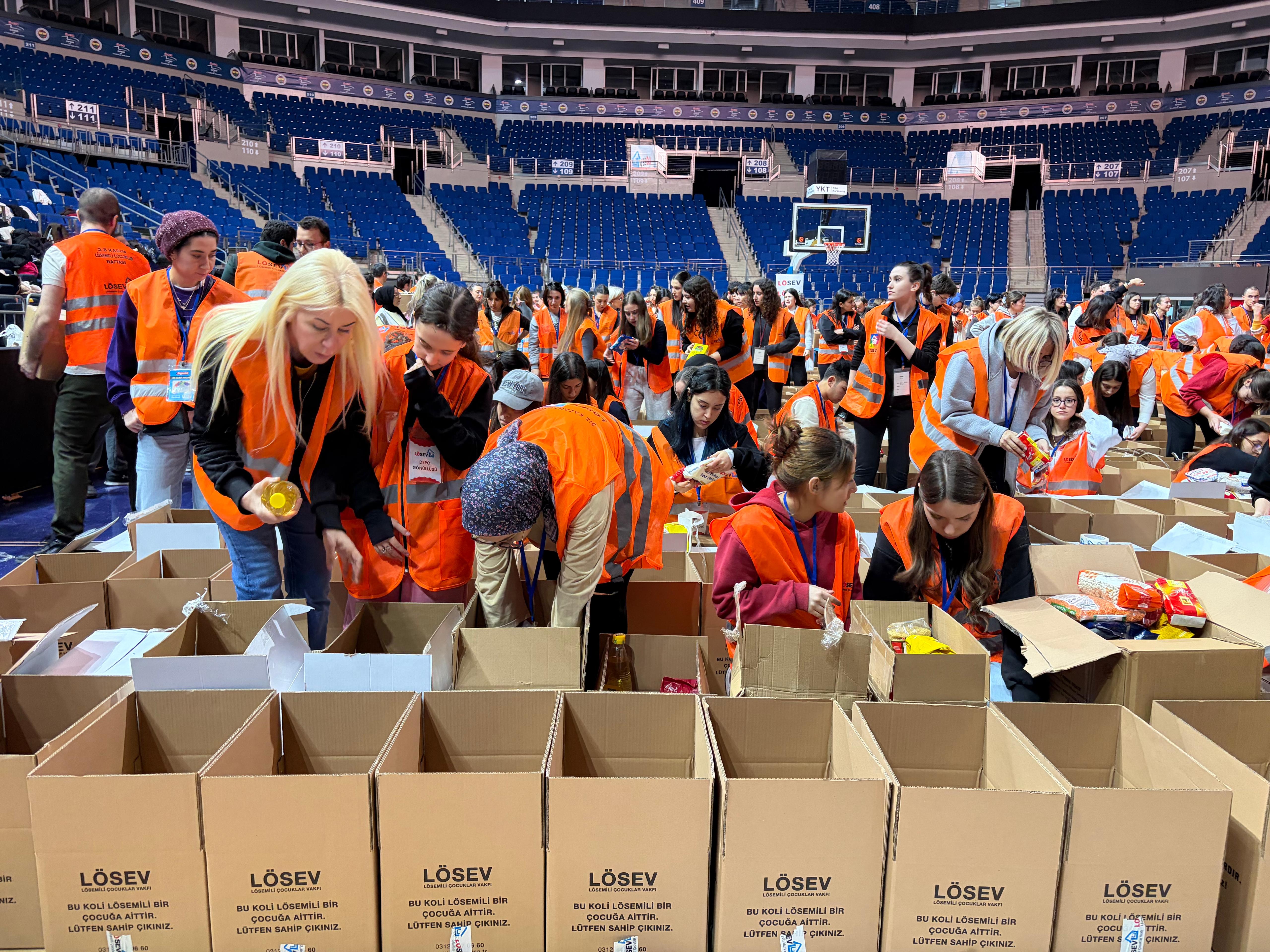 Her yıl olduğu gibi bu yıl da “Önce Çocuklar İyileşsin” diyerek, binlerce gönüllü, bağışçı ve iyileşmiş gençlerin destekleri ile kaliteli, doğal ve sağlıklı ürünlerle dolu LÖSEV Gıda Paketleri tüm ülke genelinde hazırlanıyor. İstanbul’da Ülker Sports Arena’da gönüllüler ve bağışçılar ile hazırlanan koliler, yüzlerce lösemi ve kanser tedavisi gören çocuk ve yetişkin hastaların evlerine kadar ulaştırılıyor.