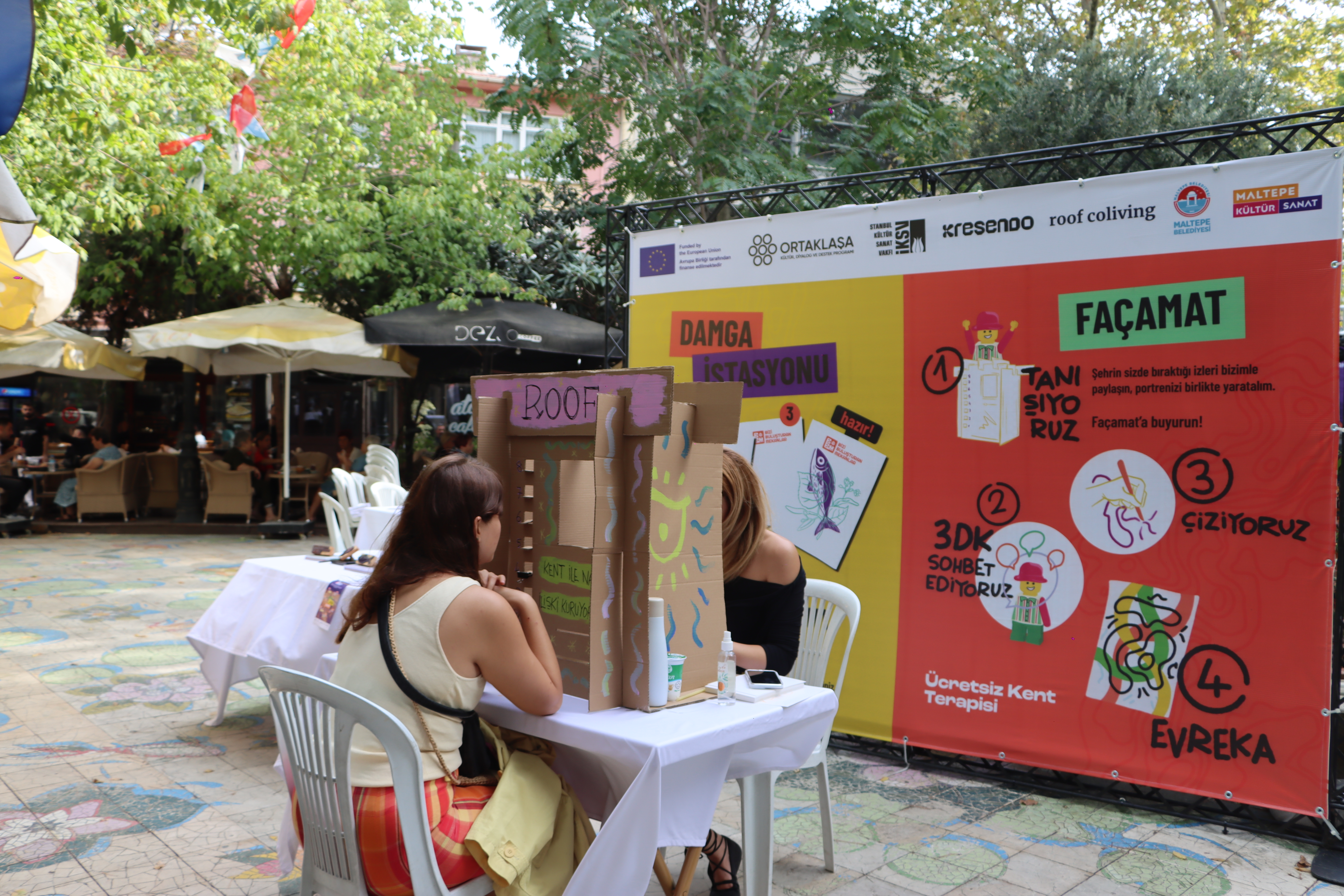 Şenlik katılımcıların deneyimine açık etkileşimli çizim kabini uygulaması “Façamat” ile başladı. Ücretsiz kent terapisi niteliği taşıyan uygulamada katılımcıların şehrin kendilerinde bıraktığı izleri paylaşmalarının ardından portreler birlikte oluşturuldu.
