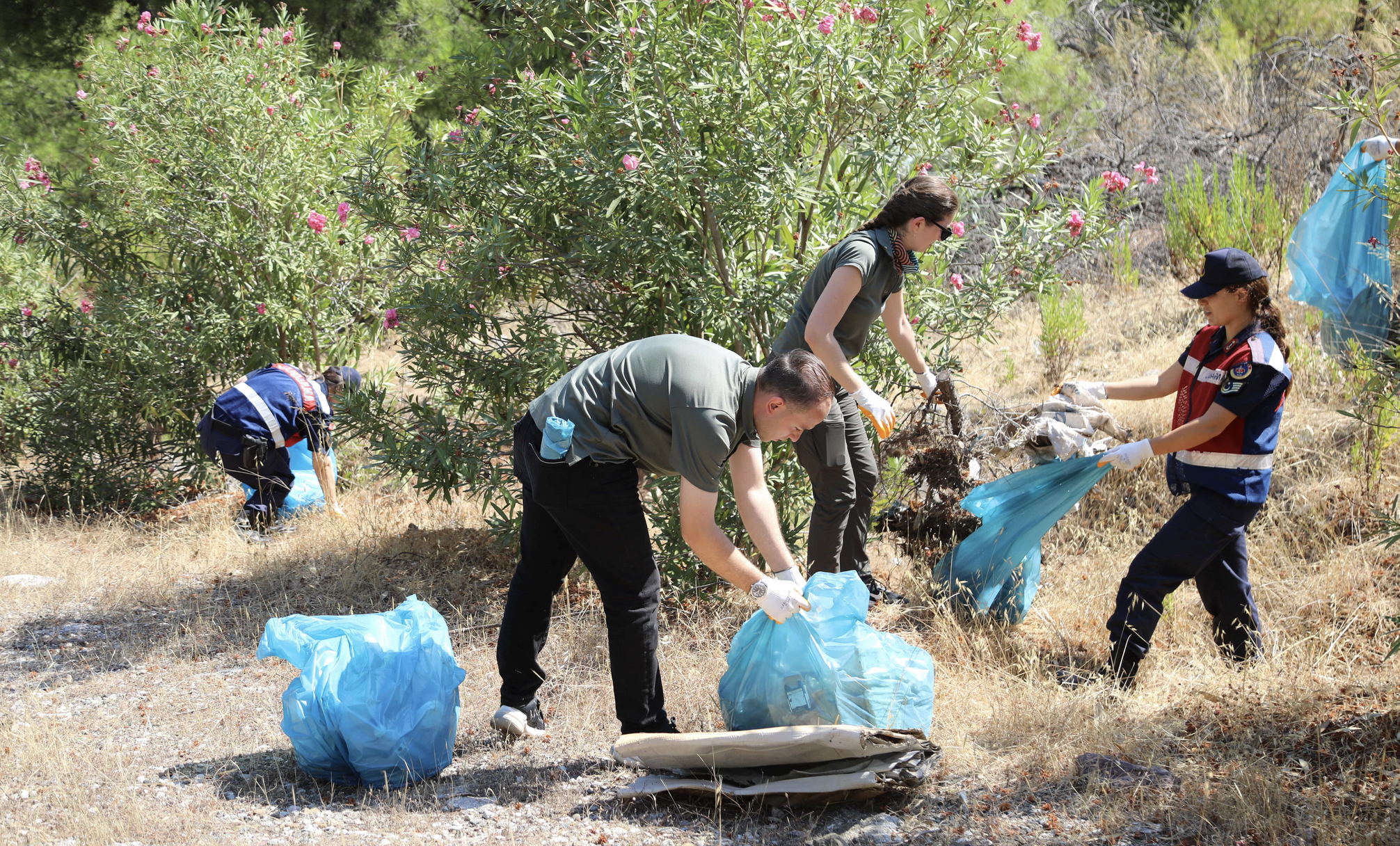 Marmaris Belediyesi ve Karayolları ekipleri, Taşhan ormanlık alanı ve Seyir Tepesi çevresinde düzenlenen temizlik etkinliği kapsamında 140 poşet atık topladı.