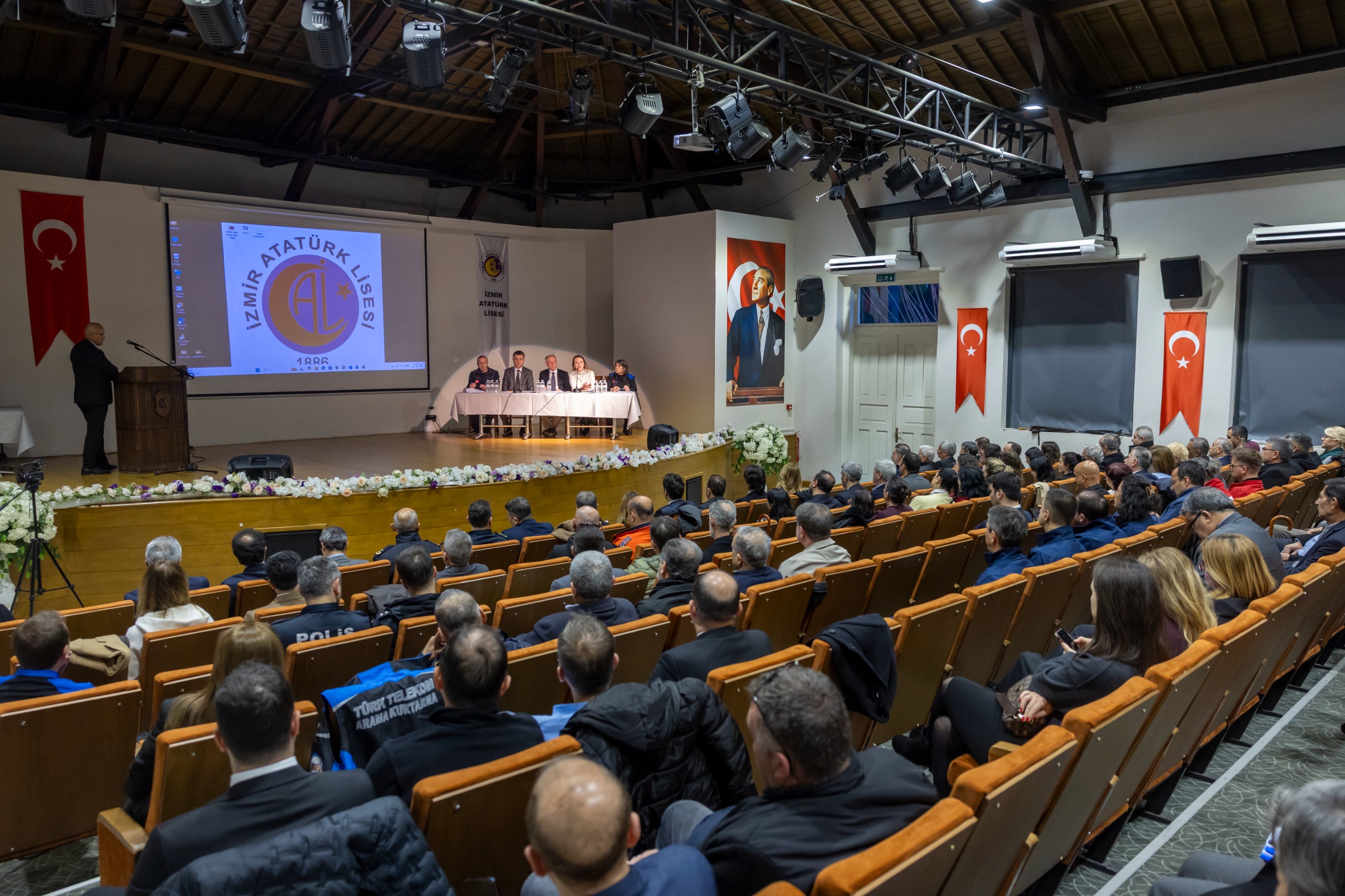 Çözüm ve destek ortakları ile paydaşları bir araya getiren toplantıya; İzmir Vali Yardımcısı İsmail Çorumluoğlu, Konak Kaymakamı Ediz Sürücü, Konak Belediye Başkanı Nilüfer Çınarlı Mutlu, İzmir İl Afet ve Acil Durum (AFAD) Müdür Yardımcısı Bülent Çetin, İl AFAD Deprem ve Risk Azaltma Şube Müdürü Sezgin Kazaz, İlçe Afet Müdahale Planı’nda ana ve destek çözüm ortağı olarak görev alan 23 Afet Grubunun sorumlu bürokratları katıldı.