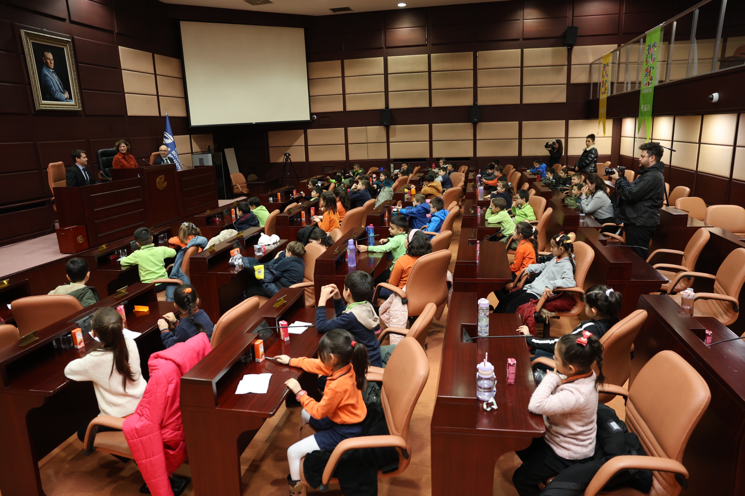 Cengiz Topel İlkokulu 2-A ve 2-D sınıfı öğrencileri ve Özel Çağdaş Okulları 2. sınıf öğrencileri, Eskişehir Büyükşehir Beledi Başkanı Ayşe Ünlüce ile Meclis Salonu’nda bir araya geldi.