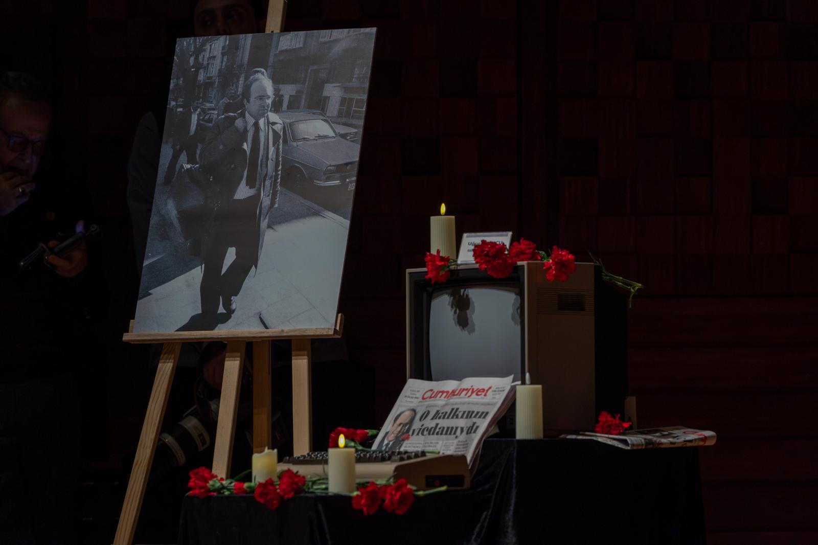 Ahmed Adnan Saygun Sanat Merkezi’ndeki (AASSM) törene, İzmir Büyükşehir Belediye Başkanı Tugay’ın yanı sıra CHP İzmir Milletvekili Ednan Arslan, CHP İzmir İl Başkanı Çağatay Güç, Cumhuriyet Vakfı Başkanı Dr. Mehmet Alev Coşkun, Uğur Mumcu’nun arkadaşı gazeteci Miyase İlknur, Konak Belediye Başkanı Nilüfer Çınarlı Mutlu, Karabağlar Belediye Başkanı Helil Kınay, Gaziemir Belediye Başkanı Ünal Işık, Seferihisar Belediye Başkanı İsmail Yetişkin, Bornova Belediye Başkanı Ömer Eşki, Bergama Belediye Başkanı Prof. Dr. Tanju Çelik, İzmir Büyükşehir Belediye Meclisi CHP Grup Başkan Vekili Altan İnanç, İzmir Gazeteciler Cemiyeti Başkanı Dilek Gappi katıldı.
