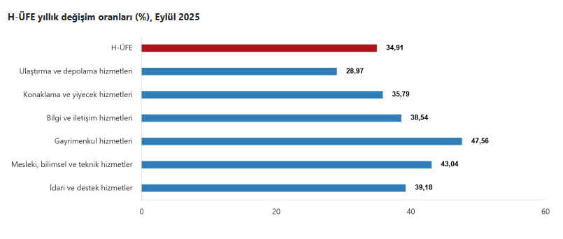 İstanbul, 31 Ekim (Hibya) – Hizmet Üretici Fiyat Endeksi (H-ÜFE), Eylül’de yıllık yüzde 34,91, aylık yüzde 0,21 yükseldi.
