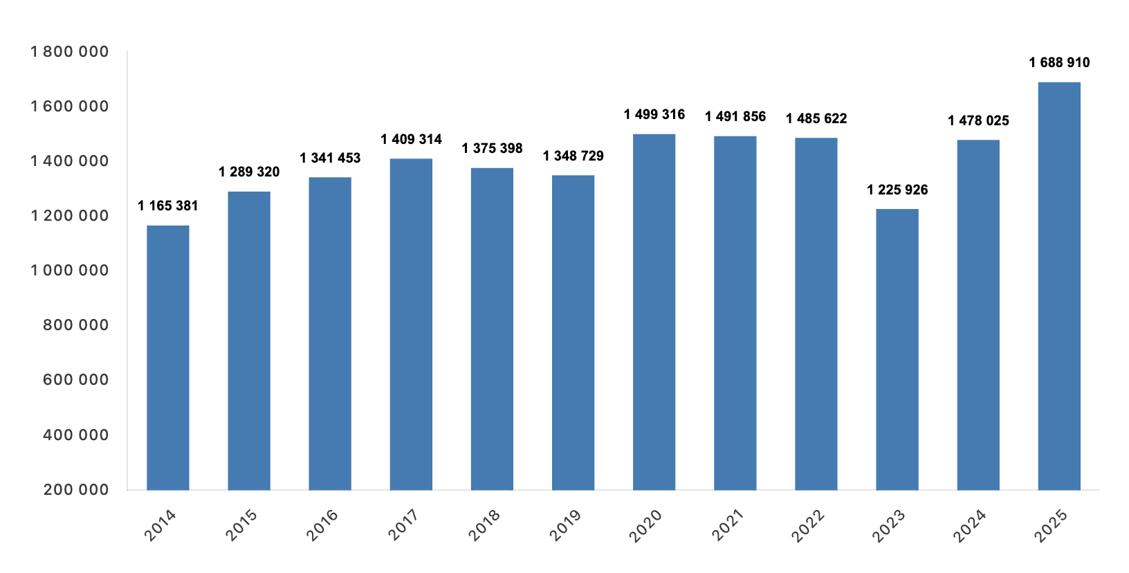 İstanbul, 20 Ocak (Hibya) – Türkiye genelinde konut satışları 2025 yılında bir önceki yıla göre yüzde 14,3 oranında artarak 1 milyon 688 bin 910 oldu.