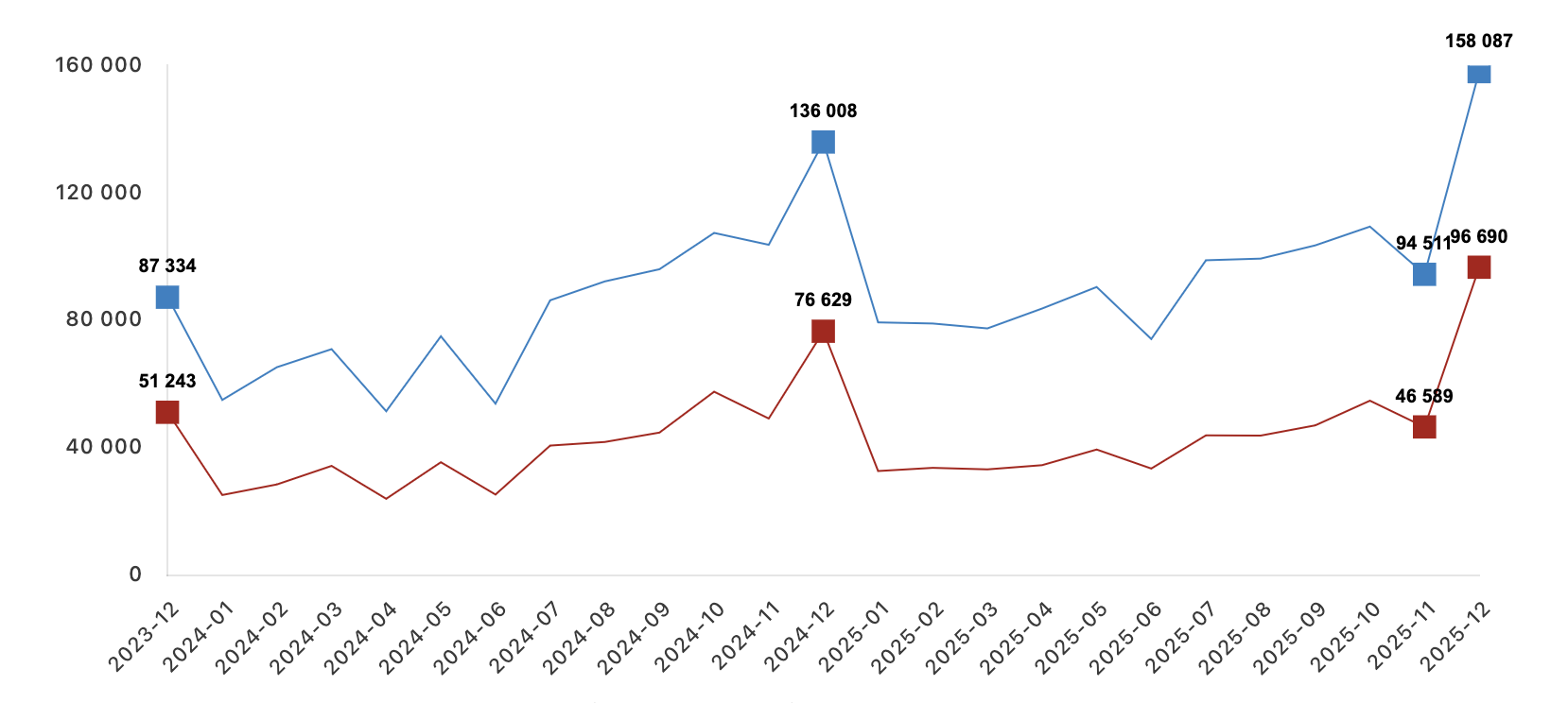 Türkiye genelinde diğer konut satışları Aralık ayında bir önceki yılın aynı ayına göre yüzde 19,2 oranında artarak 225 bin 628 oldu. 2025 yılında gerçekleşen diğer konut satışları ise bir önceki yıla göre yüzde 10,1 oranında artarak 1 milyon 452 bin 242 oldu.